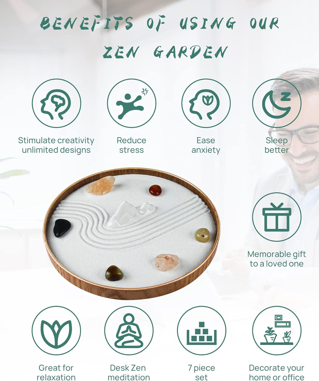 8 reviews for Japanese Zen Garden for Desk – Static Mountain 10″ x 10″ Desktop Mini Zen Garden with White Sand Artificial Tree Rocks Rakes & Accessories – Meditation Zen Gifts Sand Garden Kit for Office Zen Decor