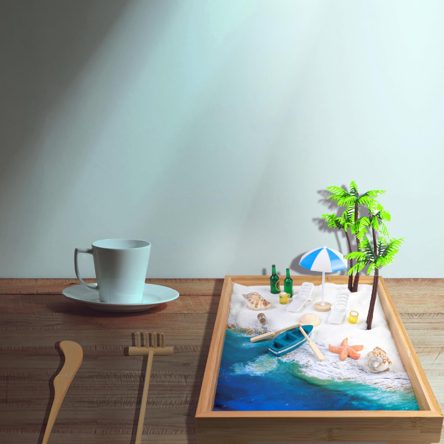 🏖️ 【Mini-beach】 This wooden sandbox set lets you create a miniature beach in your own home or office. The box keeps the sand contained while it’s being played with.