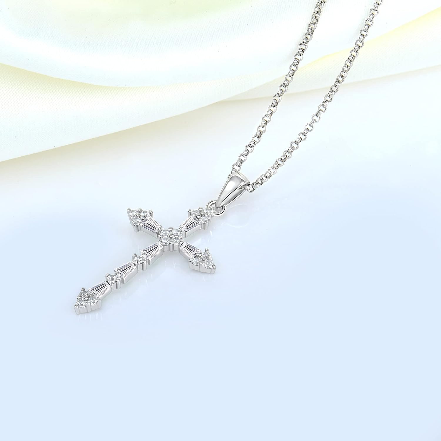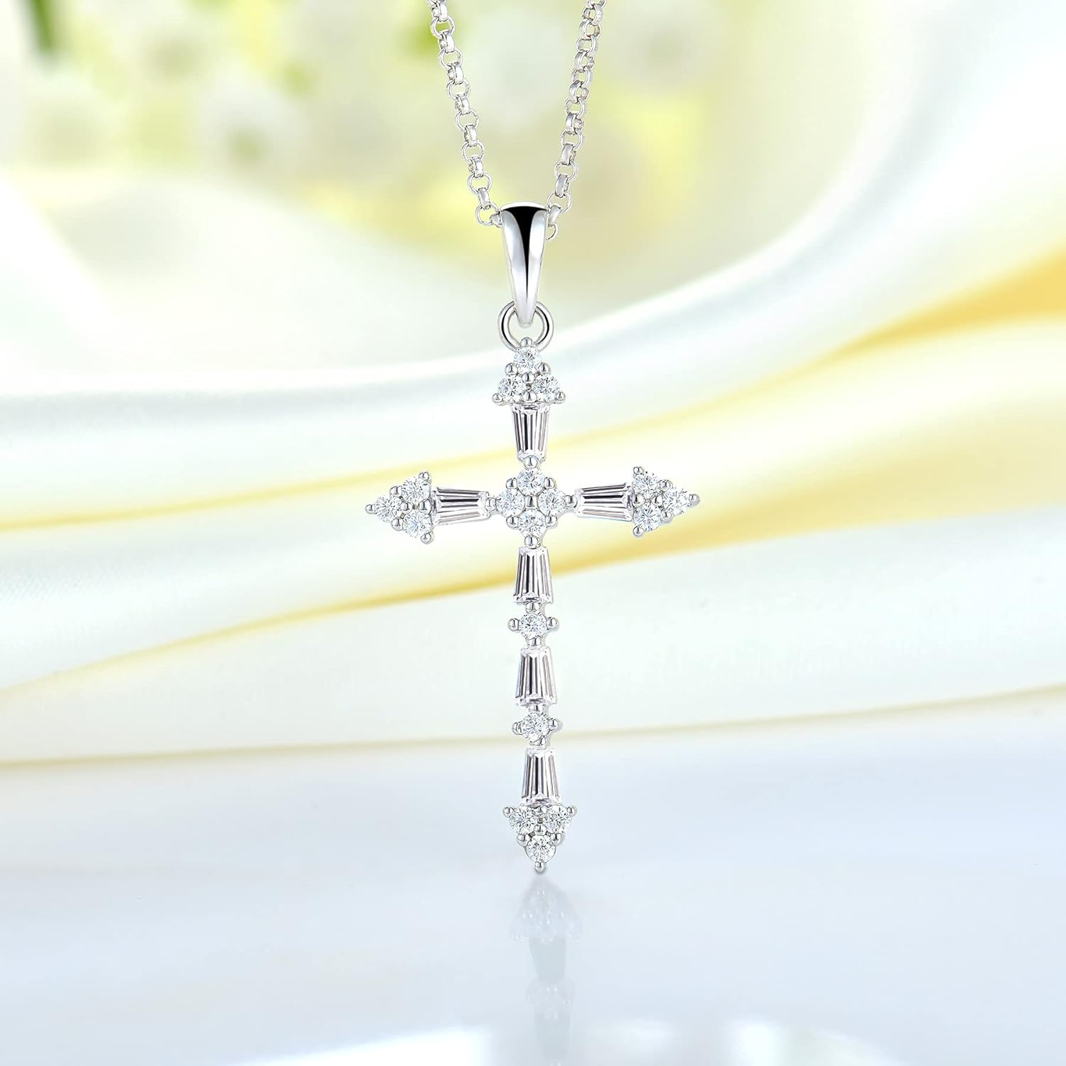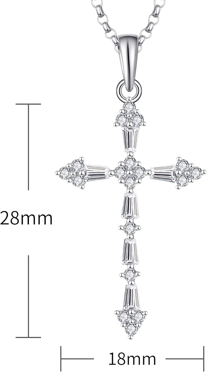 JO WISDOM Cross Necklace,925 Sterling Silver AAA Cubic Zirconia Cross Crucifix Pendant Necklace,Jewelry for Women
