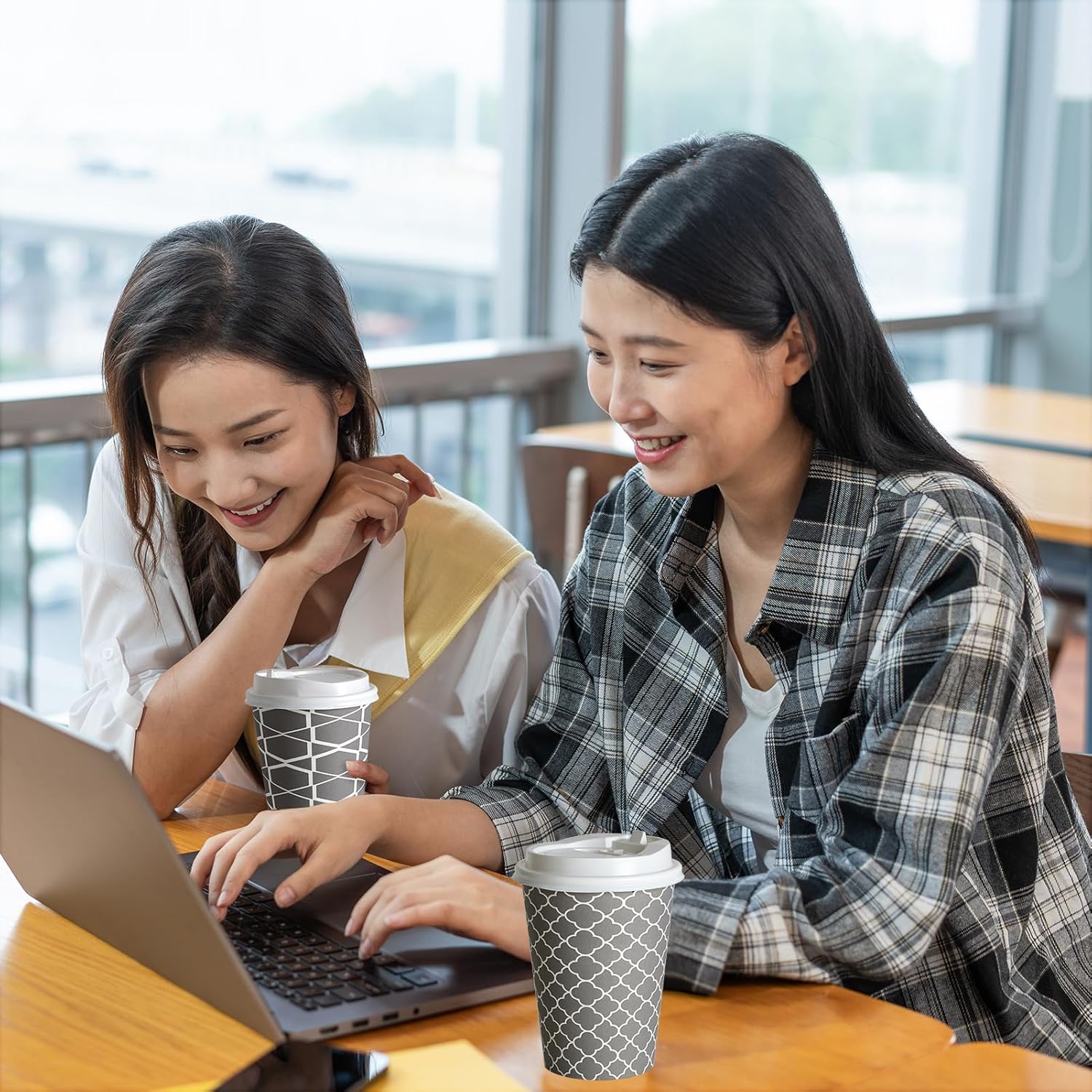 8 reviews for JOLLY PARTY Disposable Coffee Cups with Lids -12 oz (100 Sets) To Go Coffee Cups, Paper Coffee Cups for Beverages Espresso Tea, Suitable for Cafes, Offices and Home