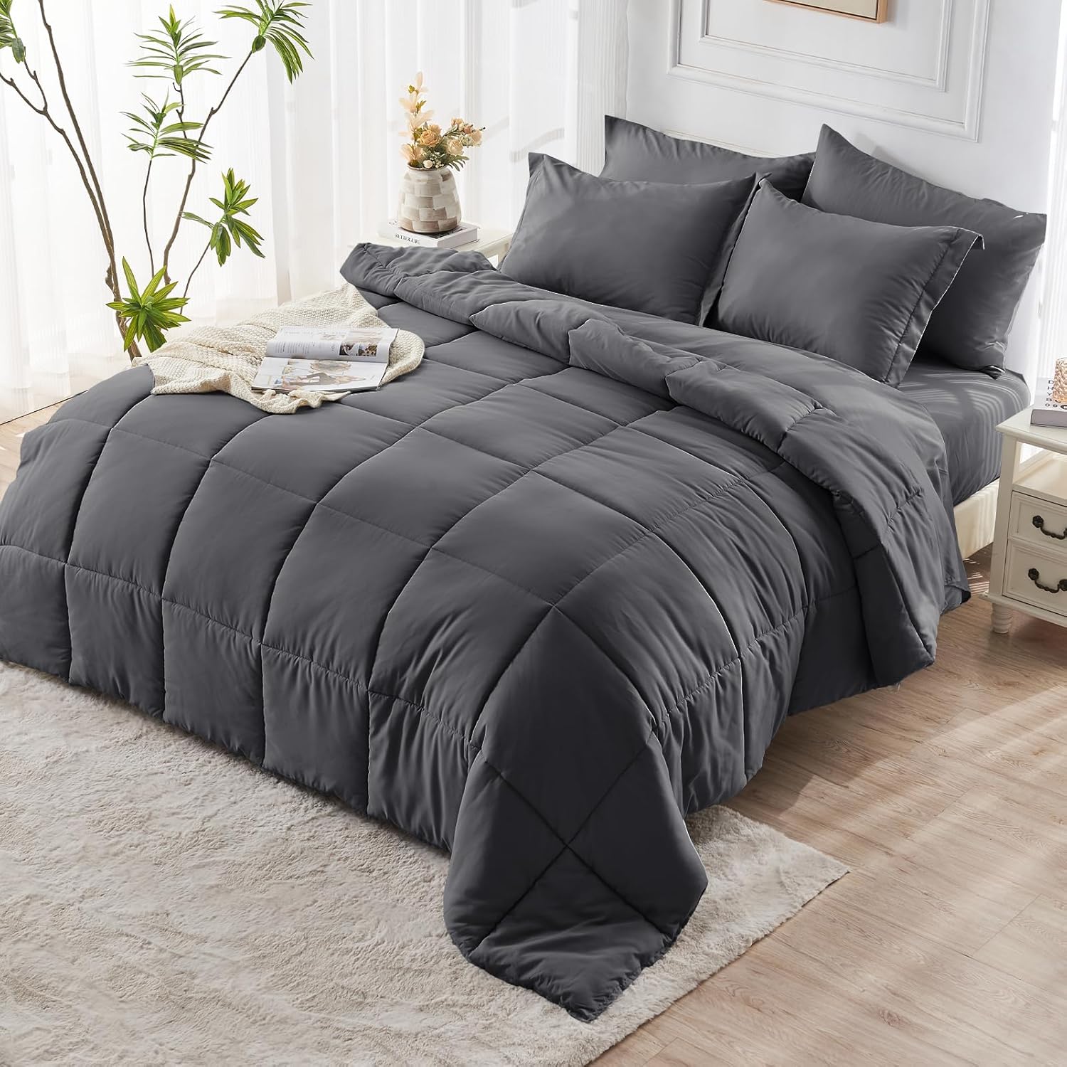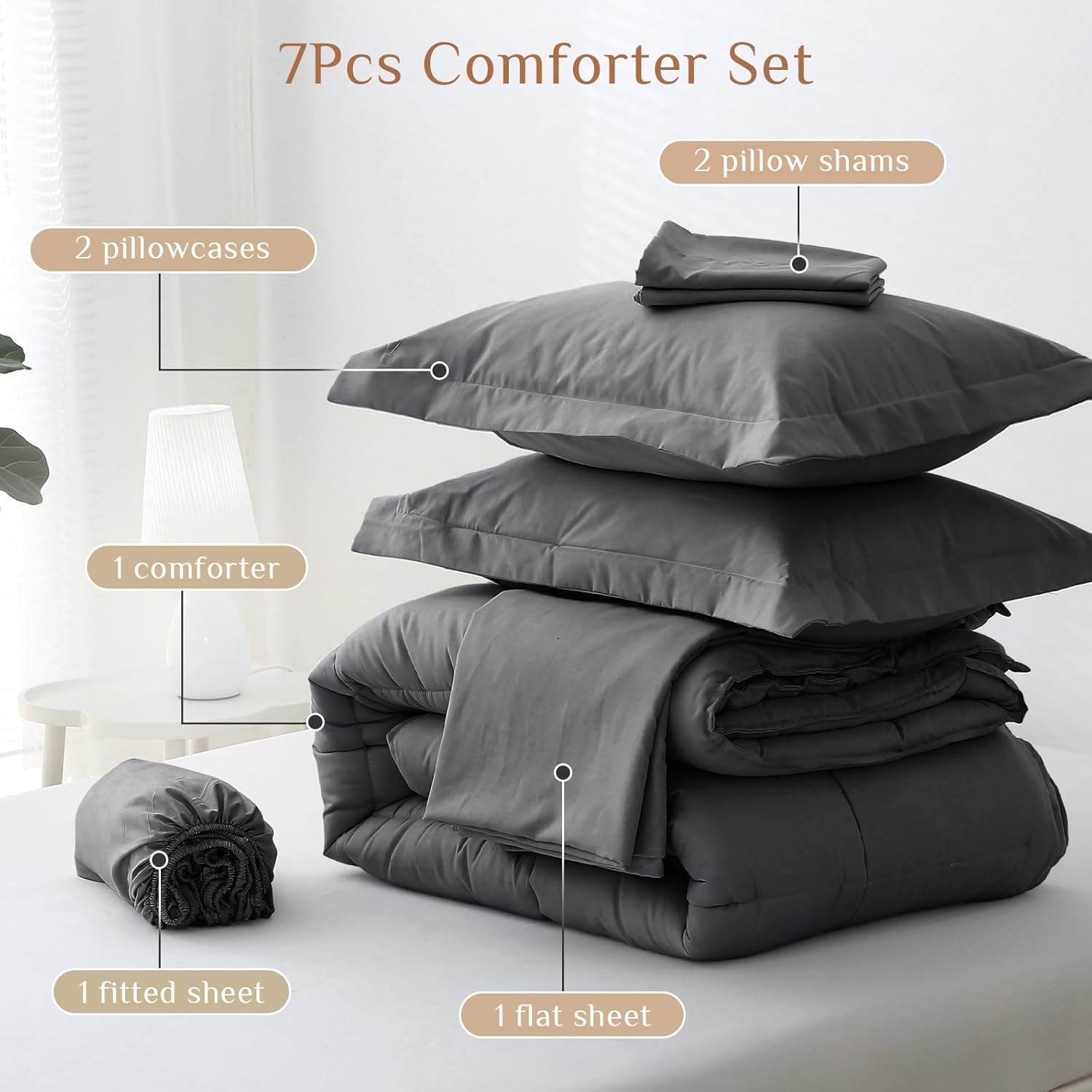 JOLLYVOGUE Queen Comforter Set, 7-Piece Bed in a Bag Queen, Ultra-Soft Comforters Queen Size, Queen Size Comforter Sets, Goose Down Alternative, Oeko-TEX Certified, Sheets & Pillowcases