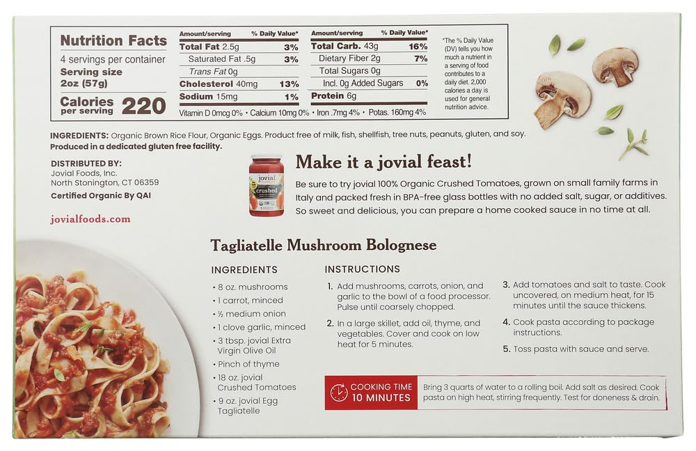 Jovial Organic Tagliatelle Traditional Egg Pasta Gluten Free — 9 oz – 2 pc