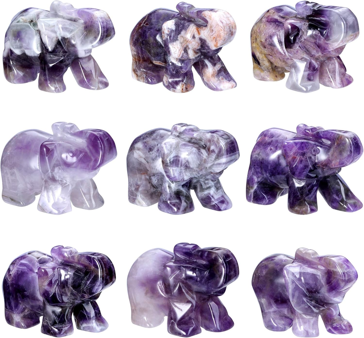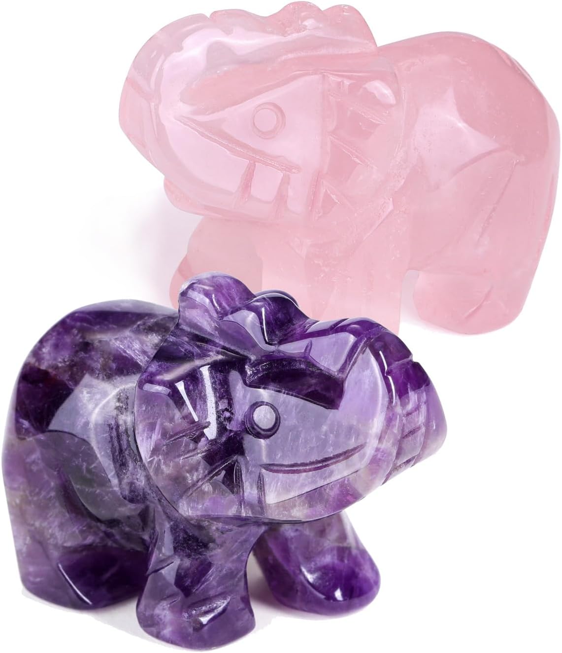 8 reviews for Jovivi 2pcs Amethyst Rose Quartz Crystal Elephant Figurines 1.5 Inch Gemstone Carved Polished Pocket Elephant Statue Hoom Room Decor Desk Decoration Christmas Ornaments
