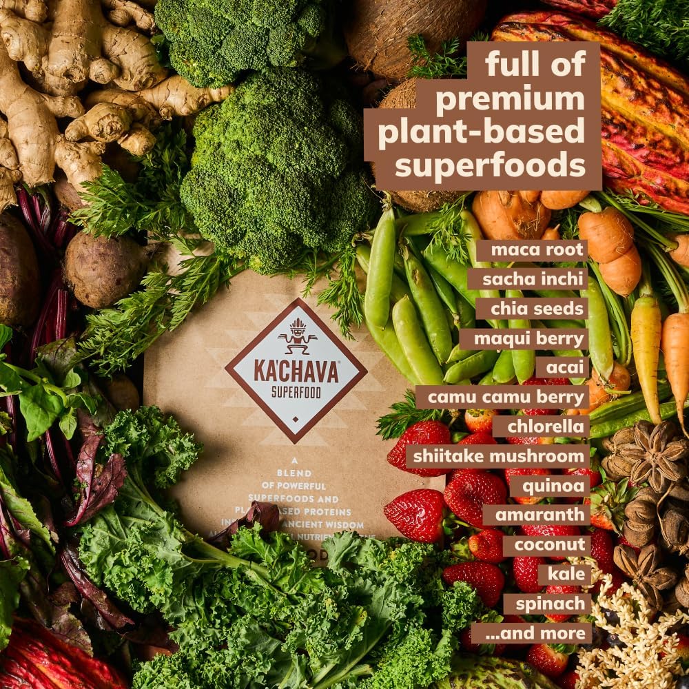 Ka’Chava All-In-One Nutrition Shake Blend, 85+ Superfoods & Nutrients, Meal Replacement, Greens Plant-Based Superfood Powder Protein Drink, Digestive Enzymes & Probiotics, Vegan Dairy Gluten Free, 2lb