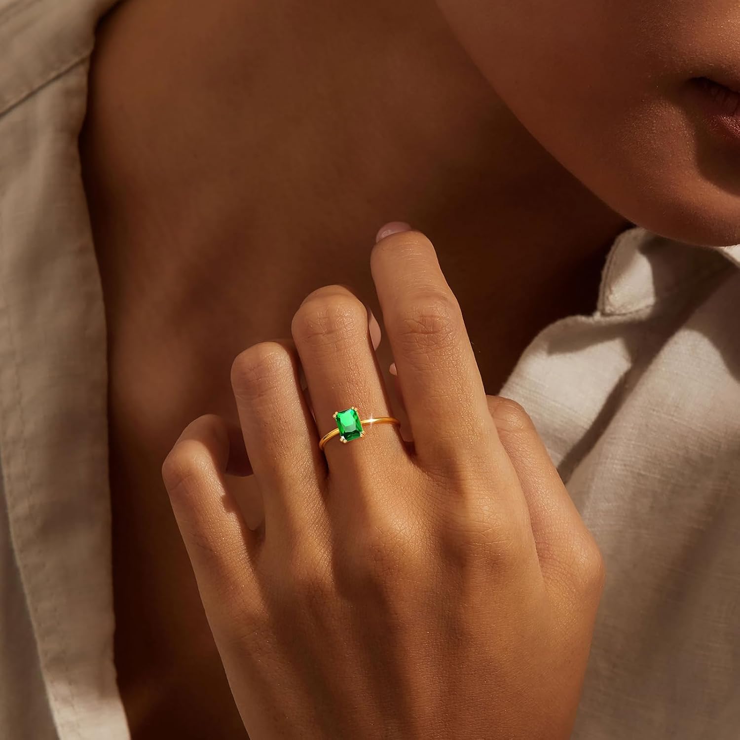 8 reviews for KAERUN Gold Birthstone Rings for Women Non Tarnish Dainty 14K Gold Plated Stackable Rings CZ Emerald Baguette Gemstone Rings for Mother Daughter Birthday Handmade Jewelry Gifts Size 6 7 8 9 10