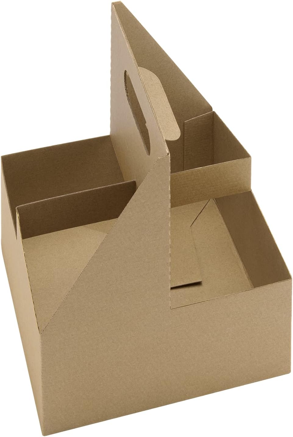 Karat Paperboard Drink Carrier with Handle – Sturdy Kraft Coffee Cup Carrier for Hot/Cold Beverages, Fits 10-32 oz Cups – Eco-Friendly, Disposable To-Go Drink Holder (4-Cup)