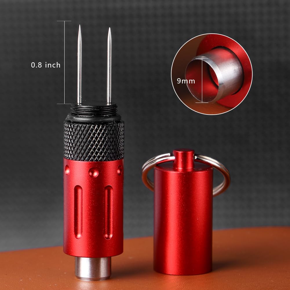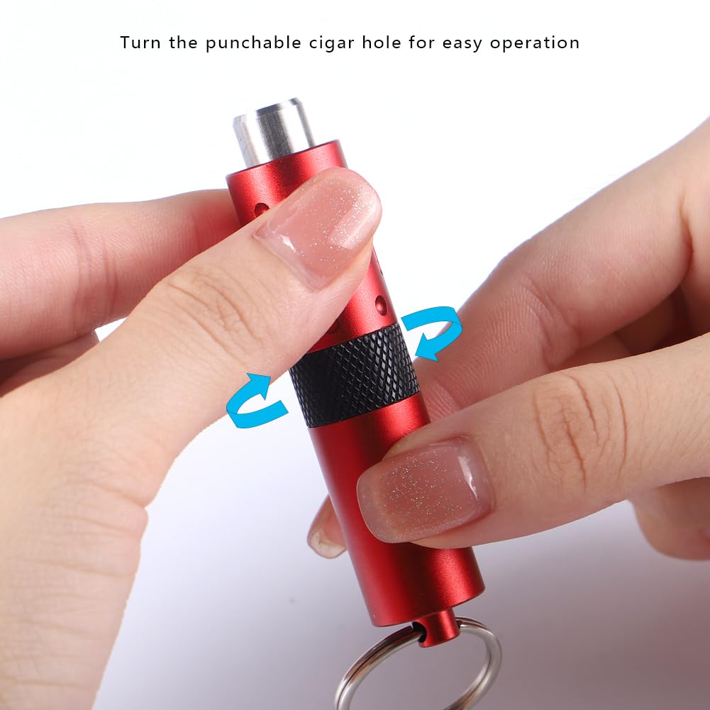KEENSUN 2-in-1 Cigar Punch Tool Set with Cigar Hole Opener(9mm) and Twin Nubber, Portable Rotary Punch with Key Chain Ring (Red)