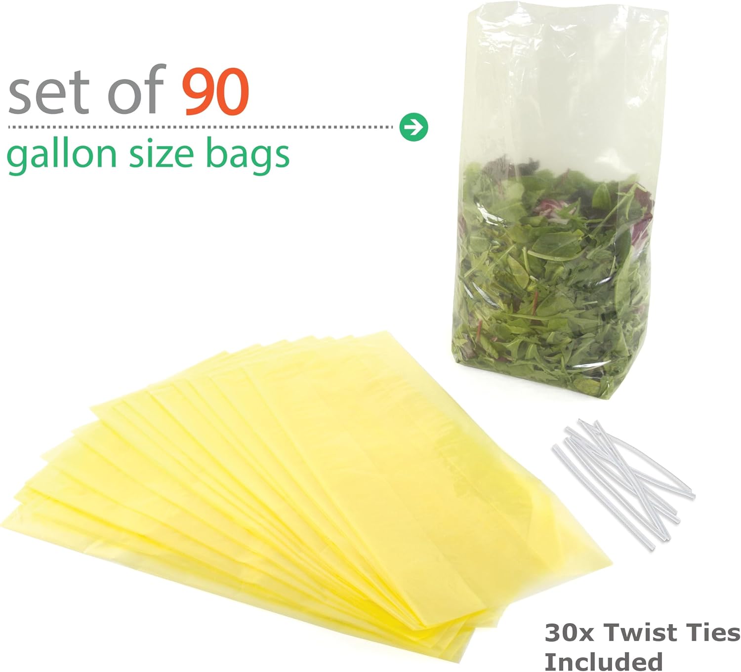 VALUE SET – Each purchase comes with 30 gallon size bags and 10 twist ties. Each bag measures 17” x 7” x 4” and is gusseted for maximum capacity. These freshness produce bags are washable and reusable up to 10 times before discarding. That’s 300 uses per purchase! Simply rinse with water and let air dry before each use. Bonus twist ties now included for added convenience.