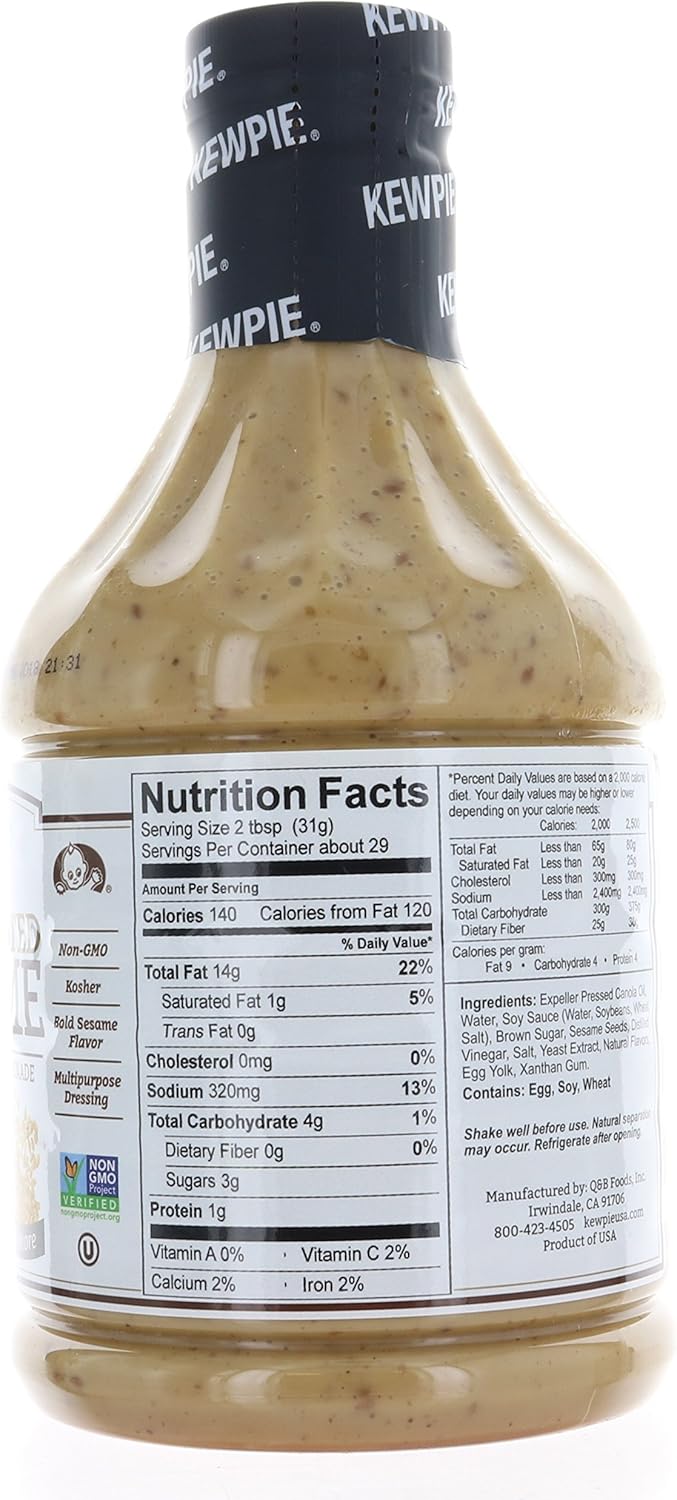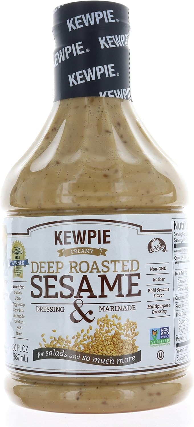 Kewpie Creamy Deep Roasted Sesame Dressing & Marinade About this item 2016 Dressing of the Year Winner, Japanese Kewpie fukairi deep-roasted sesame dressing Great on chicken, fish, or any types kind of meat, Cold Pasta, Veggie Dip, Slaw Mix or Marinade Certified Non-GMO and Kosher; CONTAINS: EGG, SOY, WHEAT Large 30 oz. size Made in USA Ships in Amazon Certified Frustration-Free Packaging