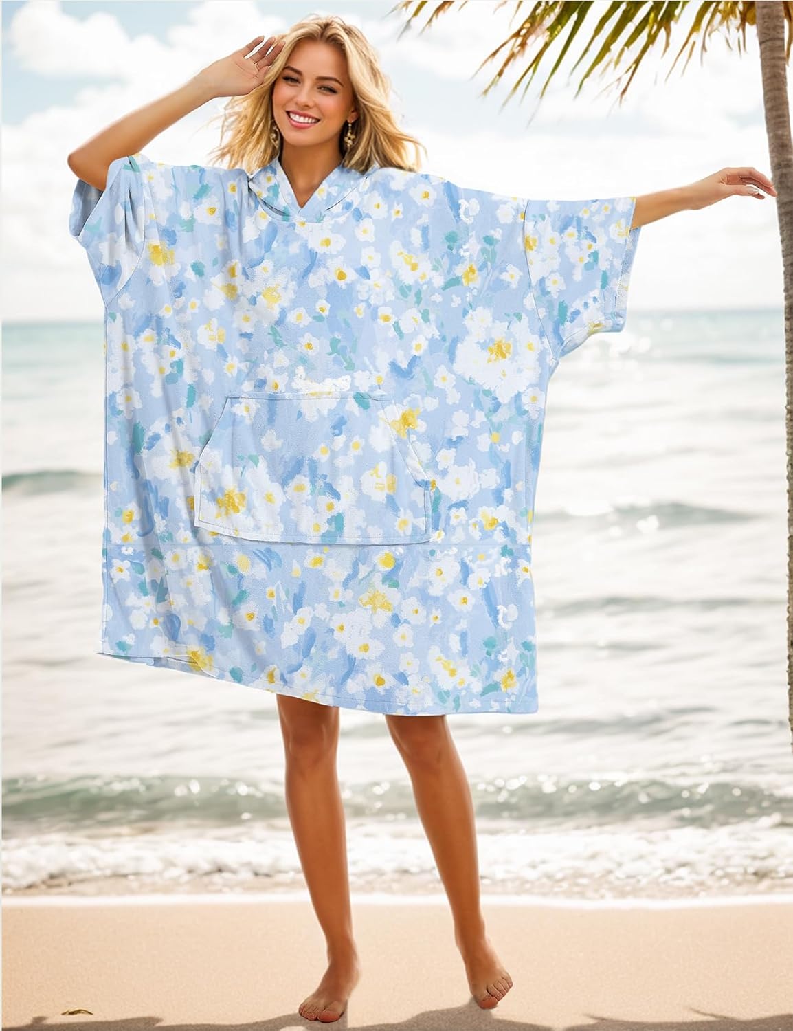 KFUBUO Surf Poncho Changing Towel Swim Robe with Pocket Plus Size Terry Cloth Swim Cover Up for Women Towel Poncho Hoodie