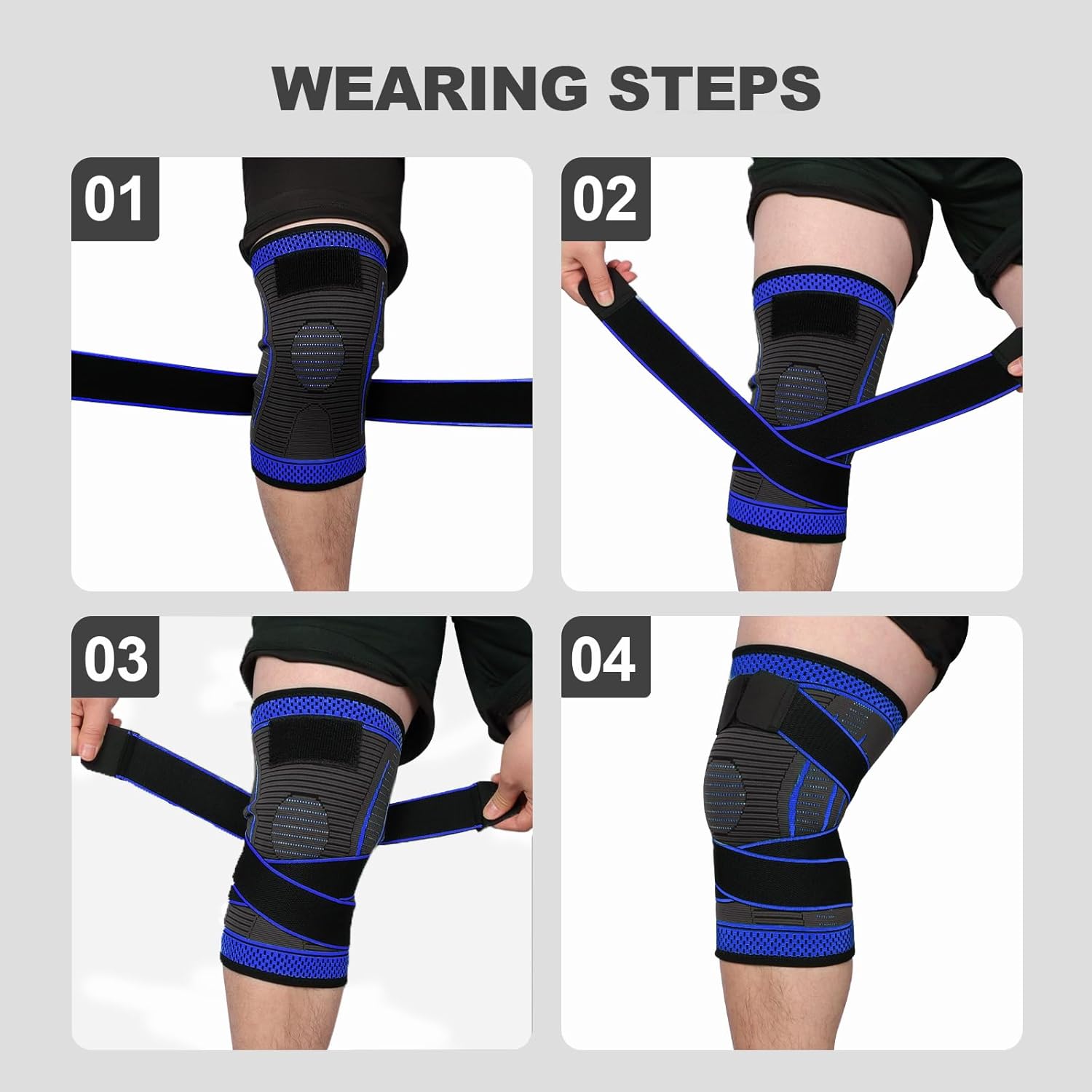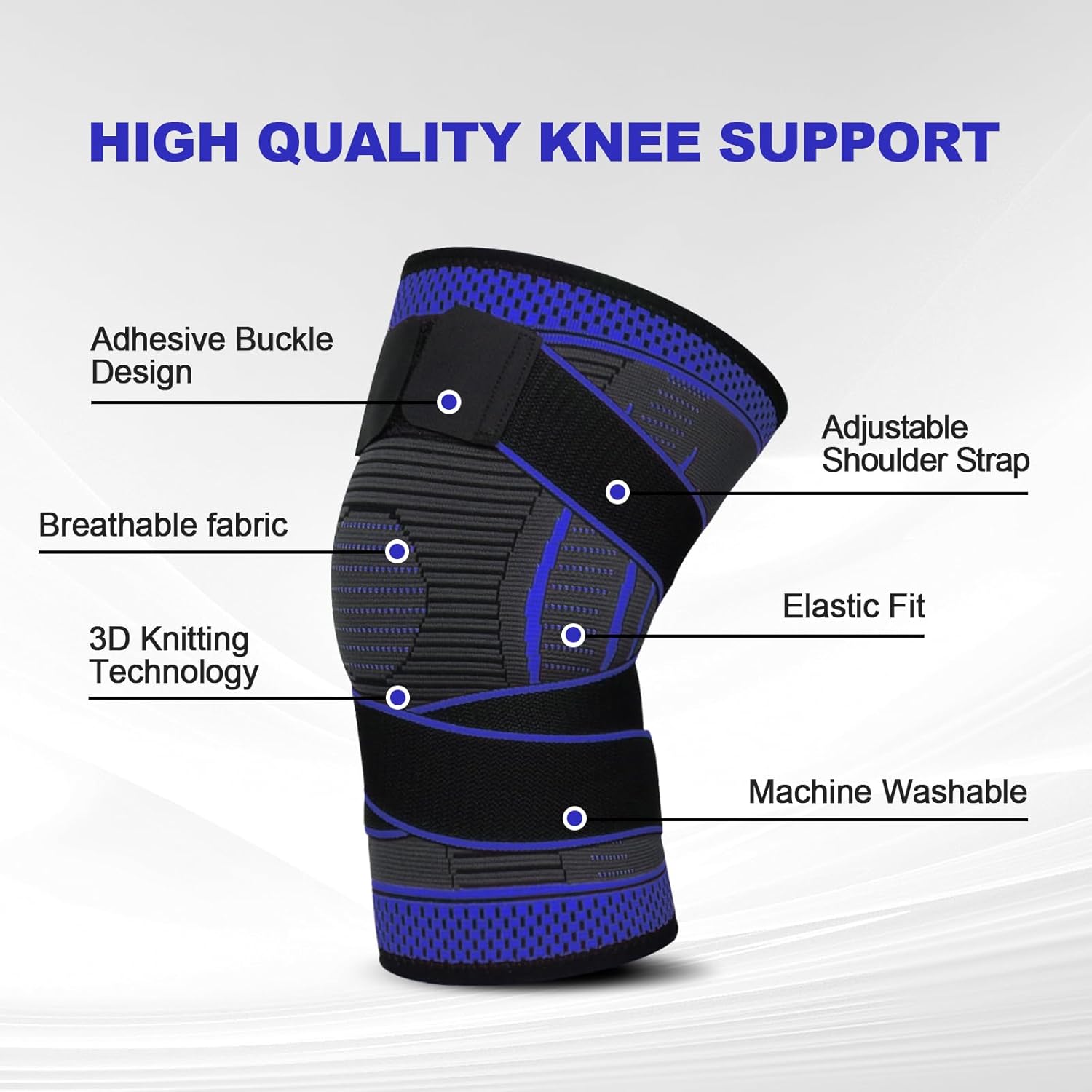 Knee Braces for Knee Pain 2 Pack Adjustable Knee Brace for Women and Men Knee Compression Sleeves with Straps for for Sports, Running, Meniscus Tear, ACL, PCL, Arthritis (Blue, XX-Large)
