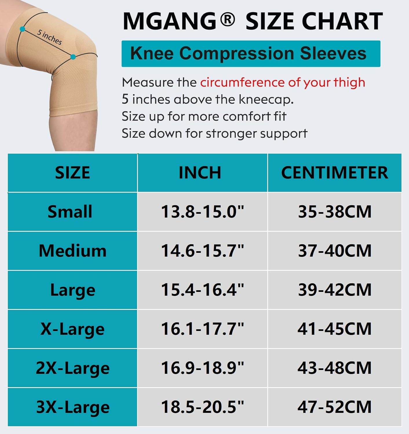 UNIQUE PHYSIOLOGY COMPRESSION TECHNOLOGY: For different compression grade sleeves, some don’t fit or work right, some are too tight, some are too loose or something else, but with MGANG compression sleeves, you’ll be sure to get a quality fit with a true graduated compression strength, which will help improve performance while alleviating knee arthritis pain and swelling, provides maximum boost to your blood circulation.