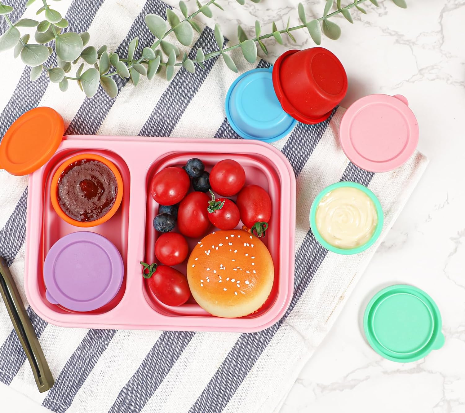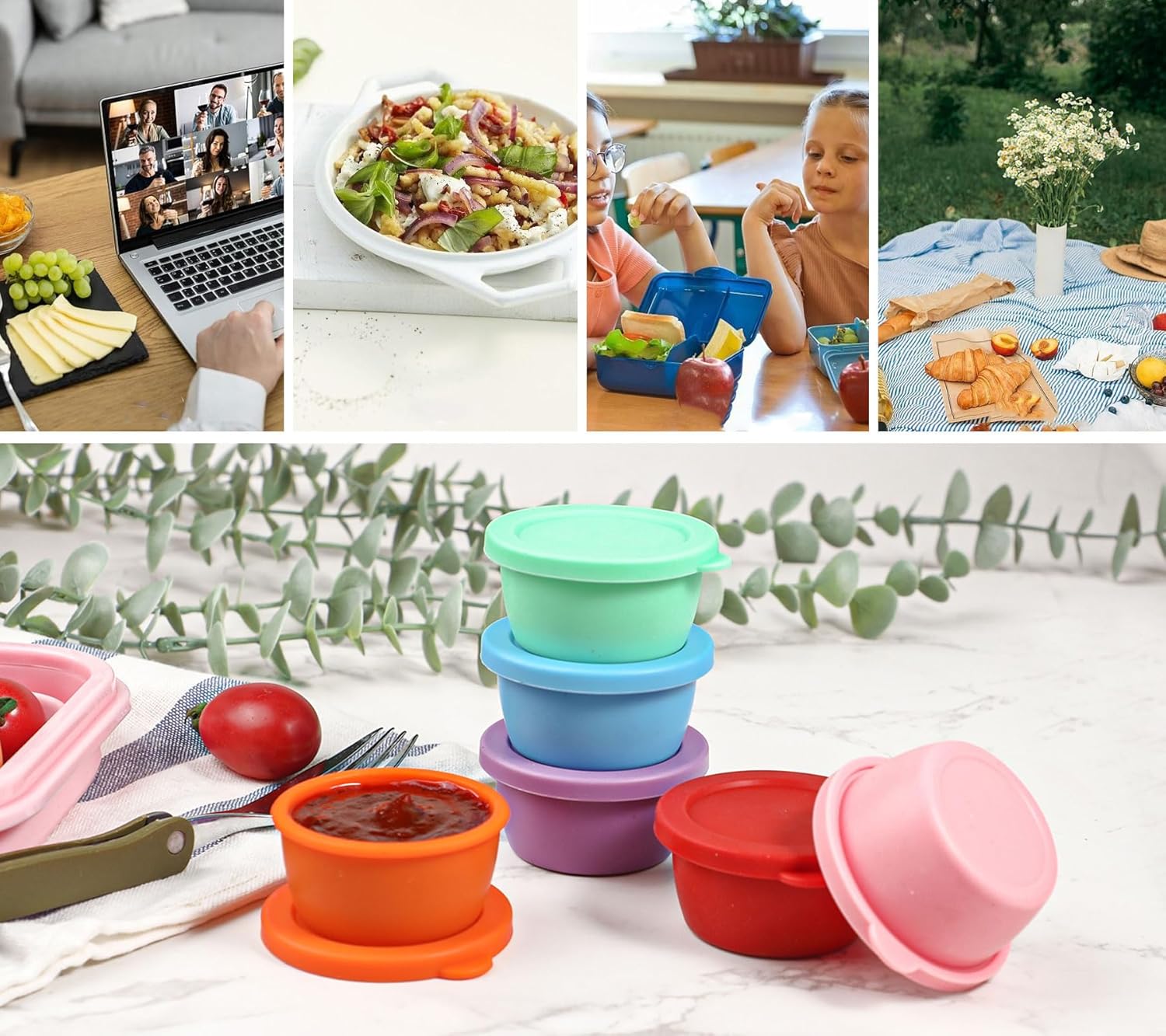The colorful small containers can meet the various preferences of adults and children, and can also be used to distinguish the different sauces.