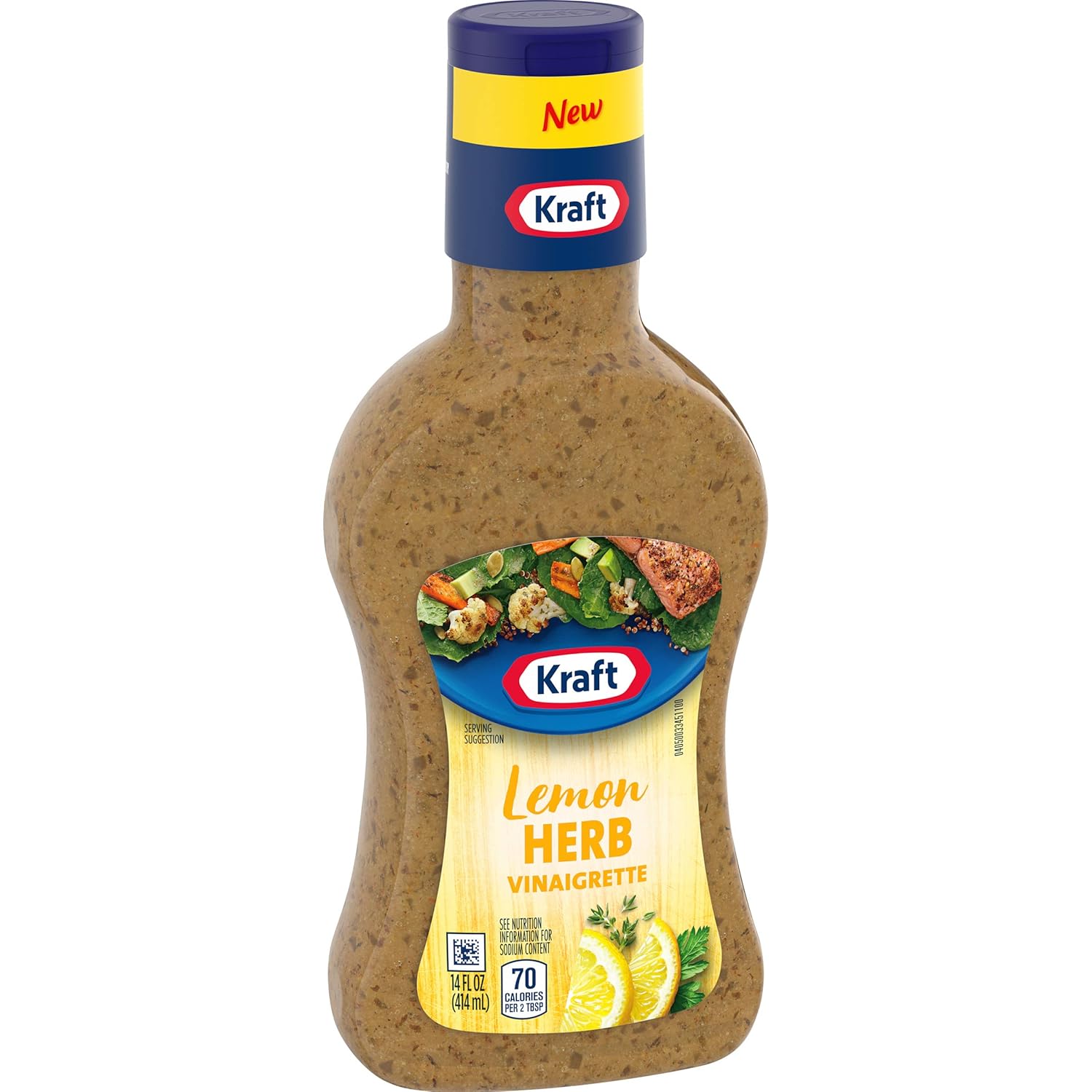 Kraft Lemon Herb Vinaigrette is an excellent dressing made with quality ingredients and only the finest herbs and spices. Add a crisp, citrus finish to any sandwich, summer salad, or wrap by topping it with Kraft Lemon Herb Vinaigrette. Try using as a summer salad dressing, grilling marinade base, or recipe ingredient. Pre-mixed for convenience, this dressing is ready to enjoy after a quick shake. Our 14 fluid ounce squeezable dressing bottle comes with a convenient top so you can add the perfect amount to all your favorite dishes at your Fourth of July and Labor Day BBQs.