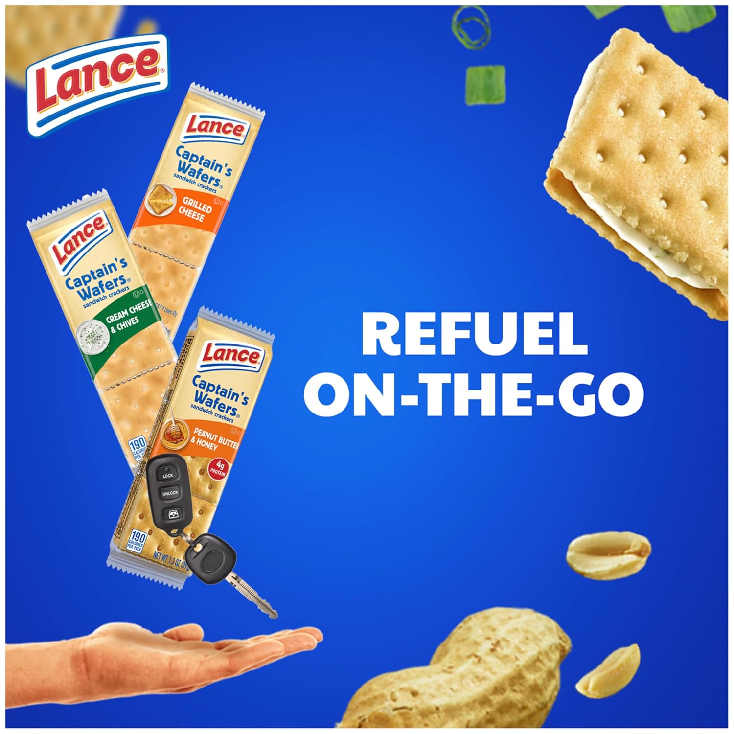 Lance Captain’s Wafers snack lovers won’t be able to get enough of this sandwich cracker variety pack! Three of your favorite flavors with delicious fillings between two crispy classic Captain’s Wafers crackers for satisfying goodness. You get a total of 10 cracker snack packs: 4 packs of Captain’s Wafers Cream Cheese & Chives, 2 packs of Captain’s Wafers Peanut Butter and Honey, and 2 packs of Captain’s Wafers Grilled Cheese. So, you can enjoy a perfect snack for breaks, afternoon snacks, or whenever you’re hungry between meals. They’re also ideal for packing when you’re on-the-go snacking. With this convenient Lance variety pack, you can grab all that delicious, goodness, any time. Hunger doesn’t stand a chance when you fuel up these tasty Lance sandwich crackers. At Lance, sandwiches mean more: they aren’t just two somethings with whatever in the middle. Or, as we say, a Lance Sandwich cracker is two awesomes on the outside with totally incredible in the middle. Lance has been fueling families for more than 100 years. Lance Sandwich crackers, the king of all sandwich crackers. Bring it!