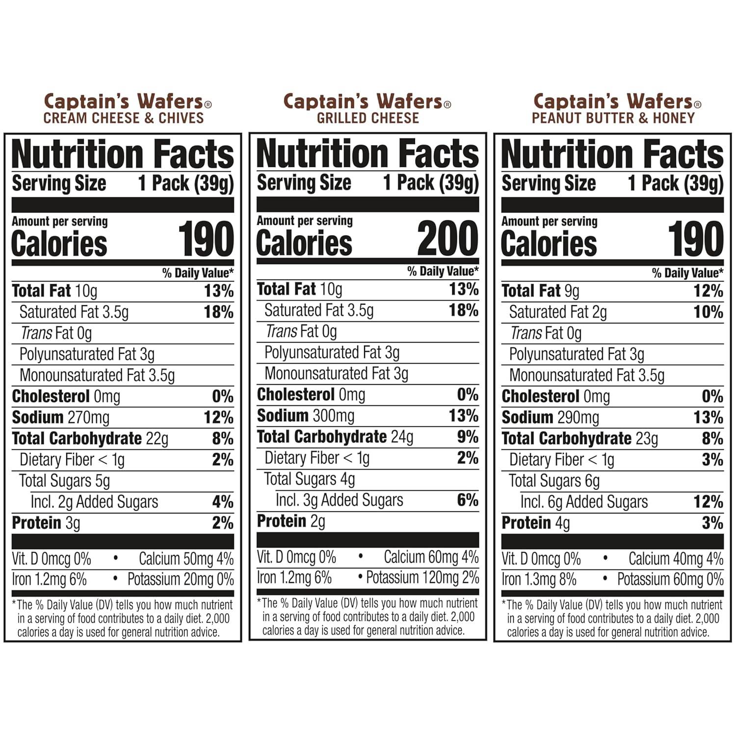 4 packs: captain’s wafers peanut butter and honey, with real peanut butter and honey filling, 6 per pack