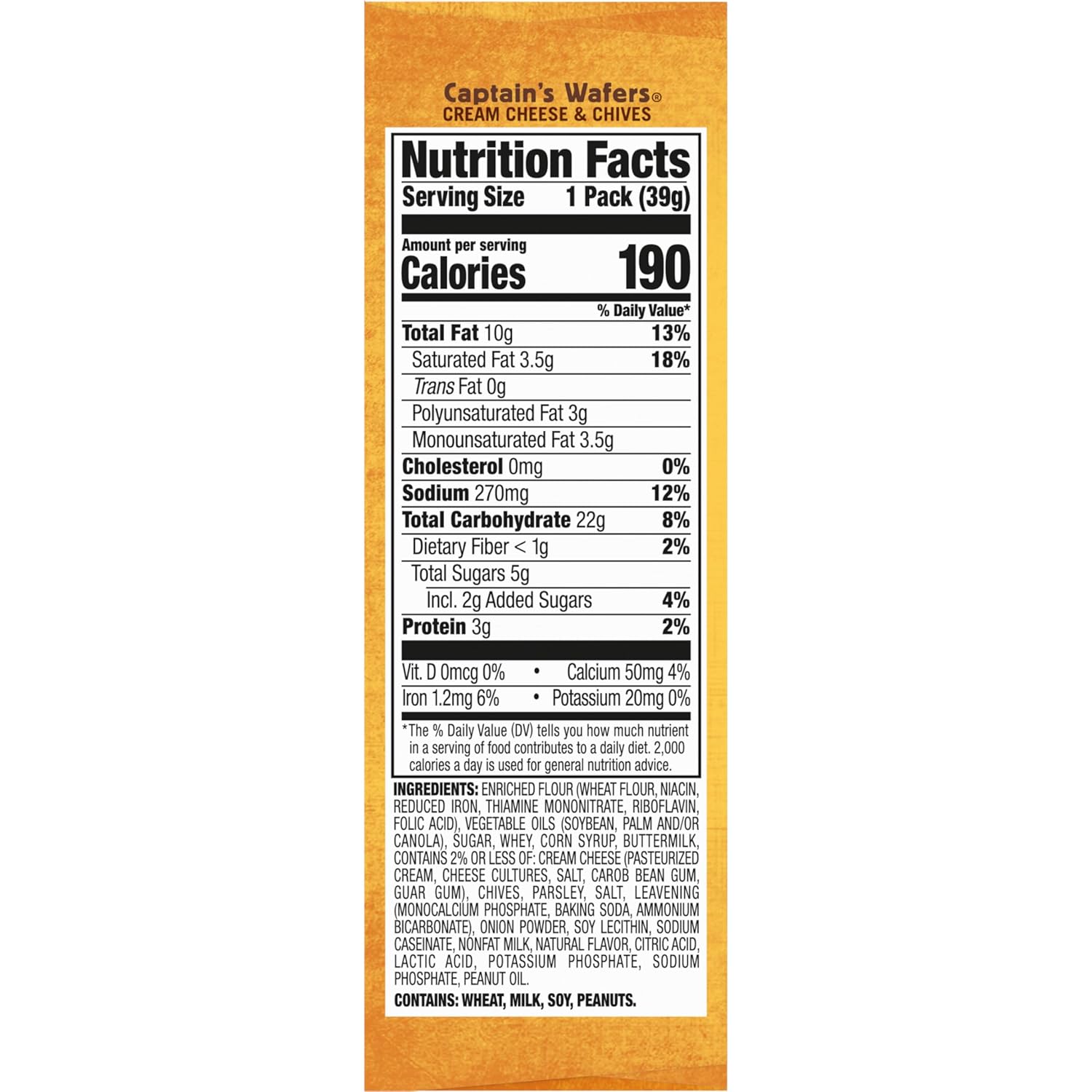 4 packs: captain’s wafers cream cheese & chives, with real cream cheese filling for rich flavor, 6 per pack