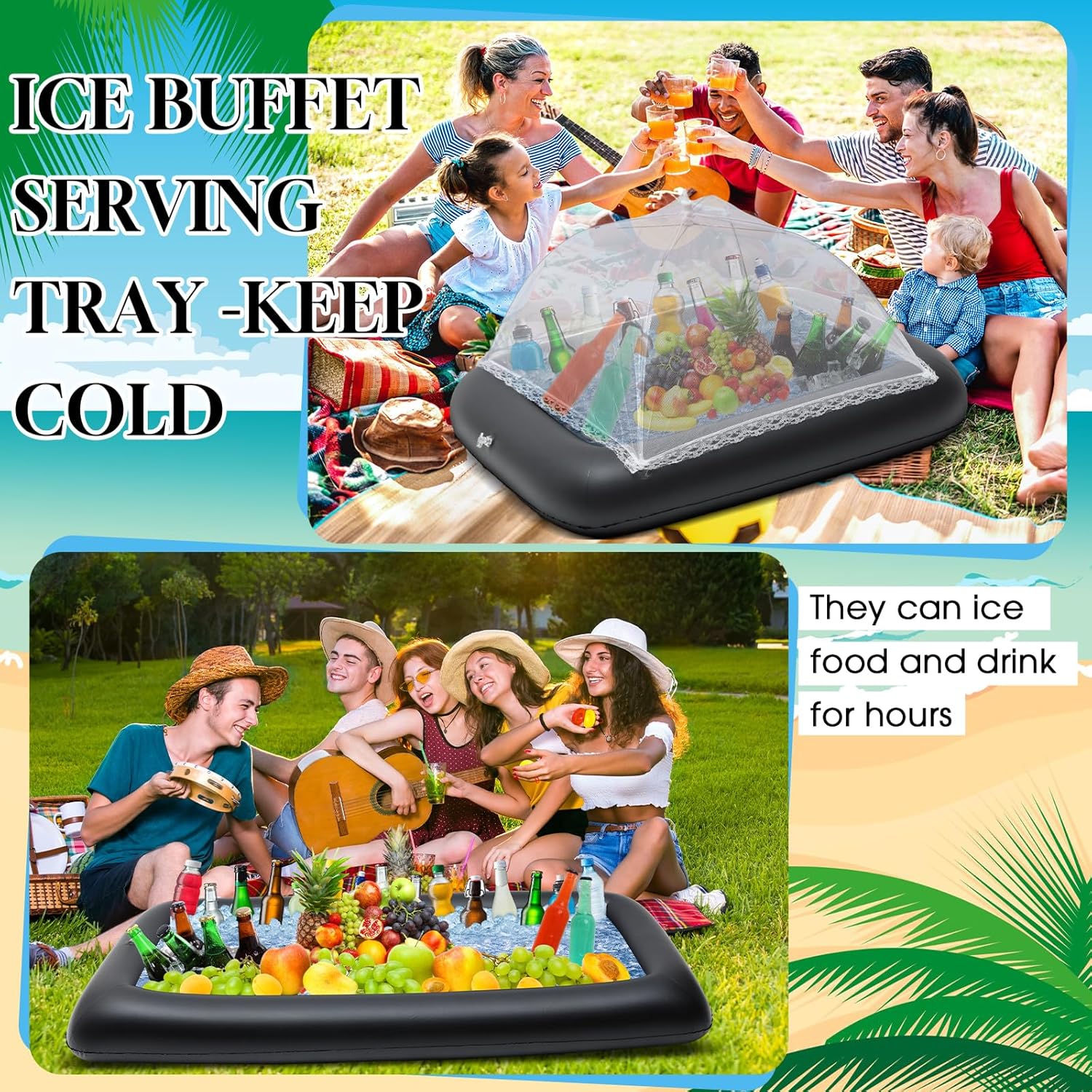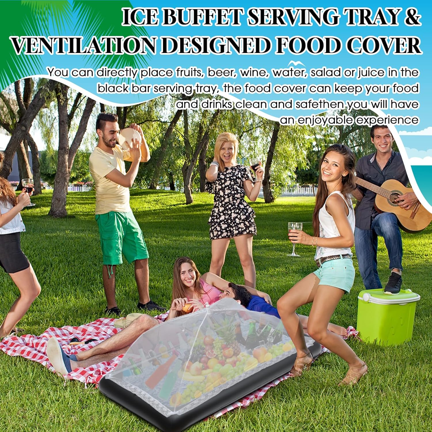 Easy to Use: this cold food buffet server can be inflated or deflated, so you can pump it with the hit inflator, which can be folded when not in use; The food cover has a rope to open and close, offering you more convenience when use