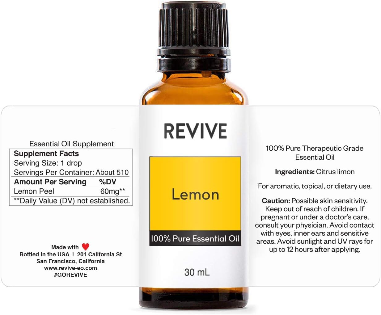 Lemon Essential Oil 30mL by Revive Essential Oils – 100% Pure Therapeutic Grade, for Diffuser, Humidifier, Massage, Aromatherapy, Skin & Hair Care