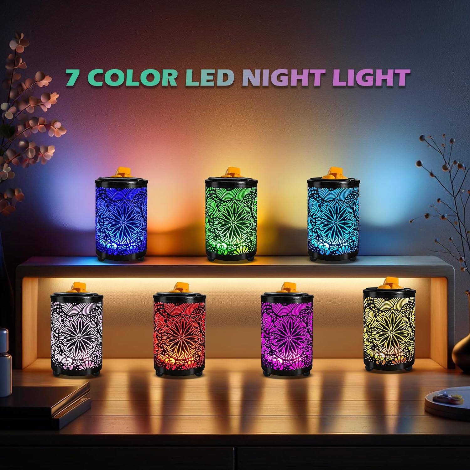 Colorful Lighting Effects: Features 7 adjustable lighting colors that can be selected to match your mood or environment, adding a cozy and romantic atmosphere to your home. Perfect for evening use to create a comfortable setting.