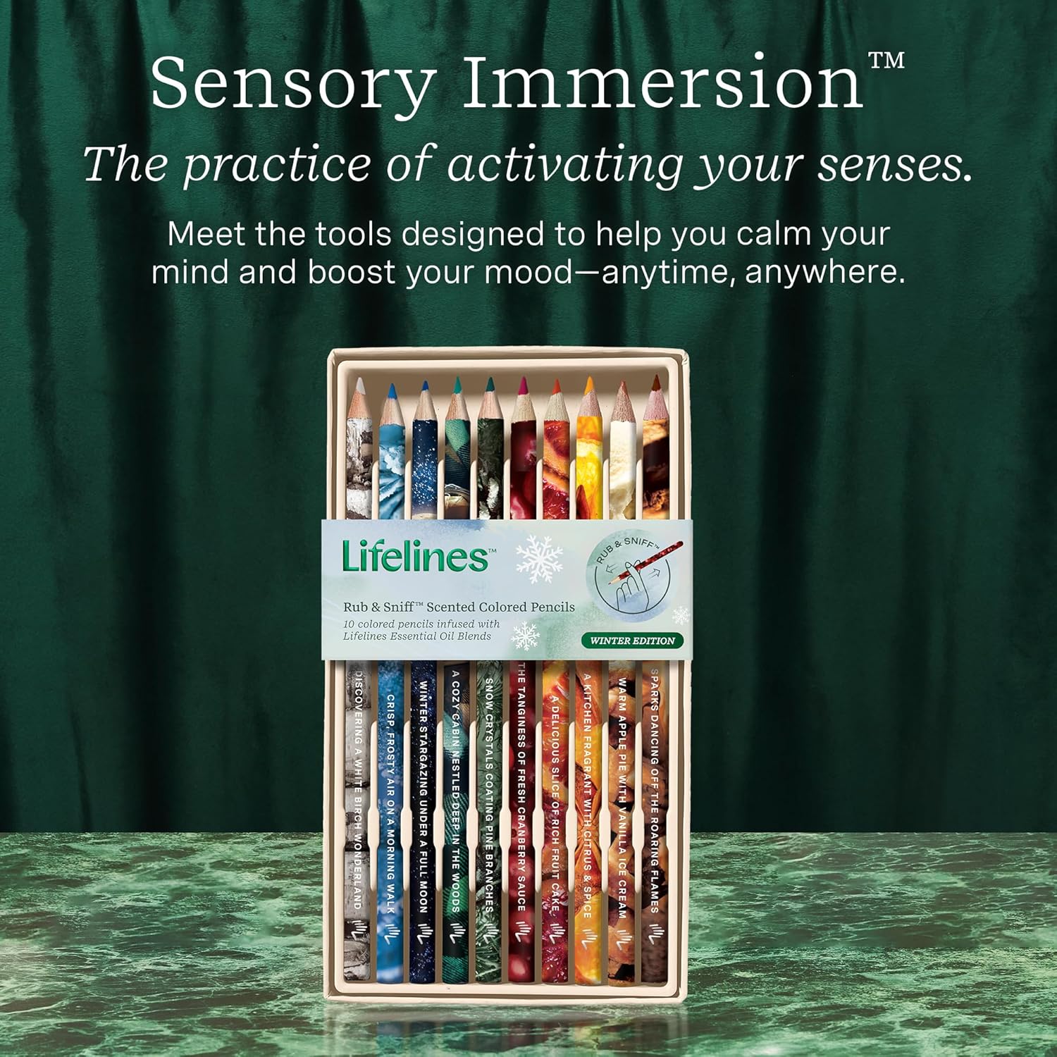 Lifelines Scented Colored Pencils, 10-Pack Winter – Rub & Sniff Color Pencils Infused with Essential Oil Blends for Arts & Crafts, Coloring Books & School Supplies