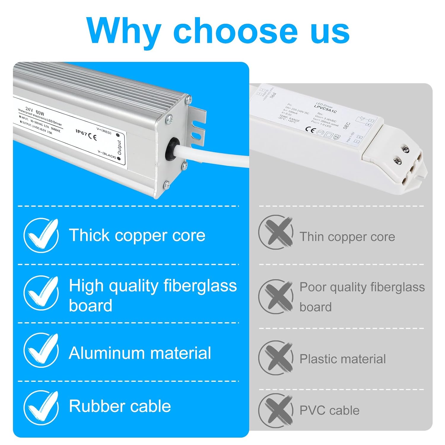 This 24v power supply with 100% Waterproof IP67 protect for outdoor use. Aluminum alloy metal housing, easy for heat dissipation and ensure stability