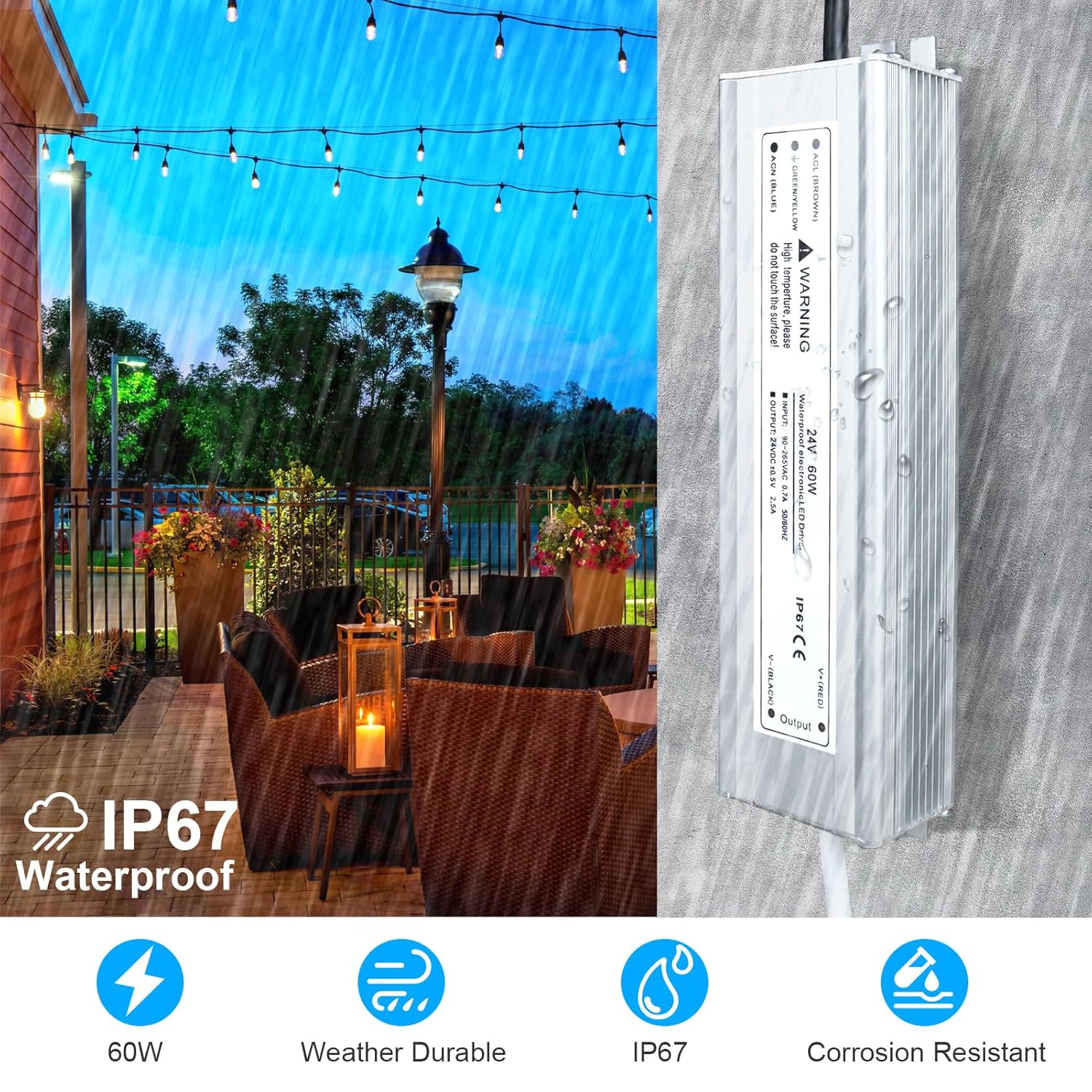 Wide Range of LED power supply: Converts 110V AC to 24V DC, widely use for LED strip lights, LED light bulbs, Outdoor Light and other 24V DC LED lights(≤60W)
