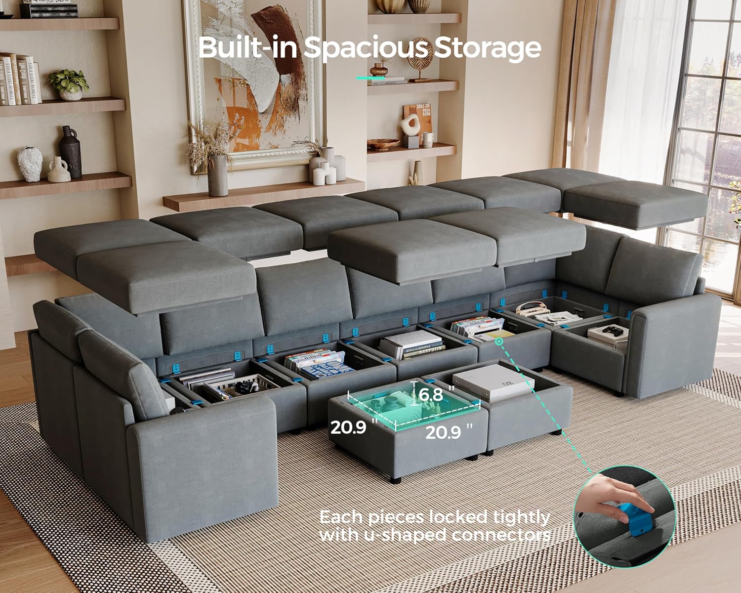 LINSY HOME Oversized Modular Sectional Sofa, Convertible Sectional Sofa Couch with Memory Foam and Storage, Sofa Covers Removable and Changeable, 10 Seat Large Sofa Set, Dark Grey