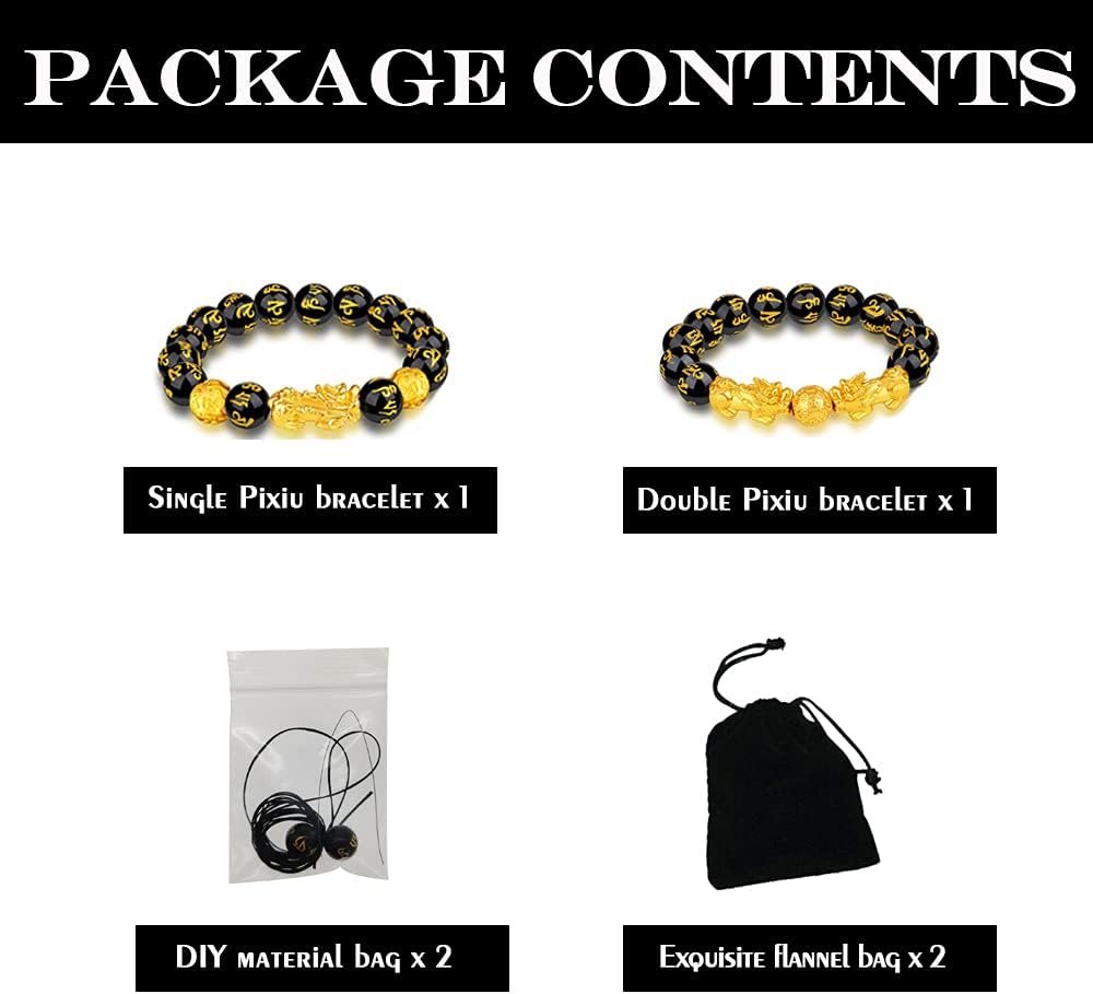 Feng Shui Bracelet x1/Exquisite packaging box x1/Black beads x2/Wire lead x1/1m elastic rope x1