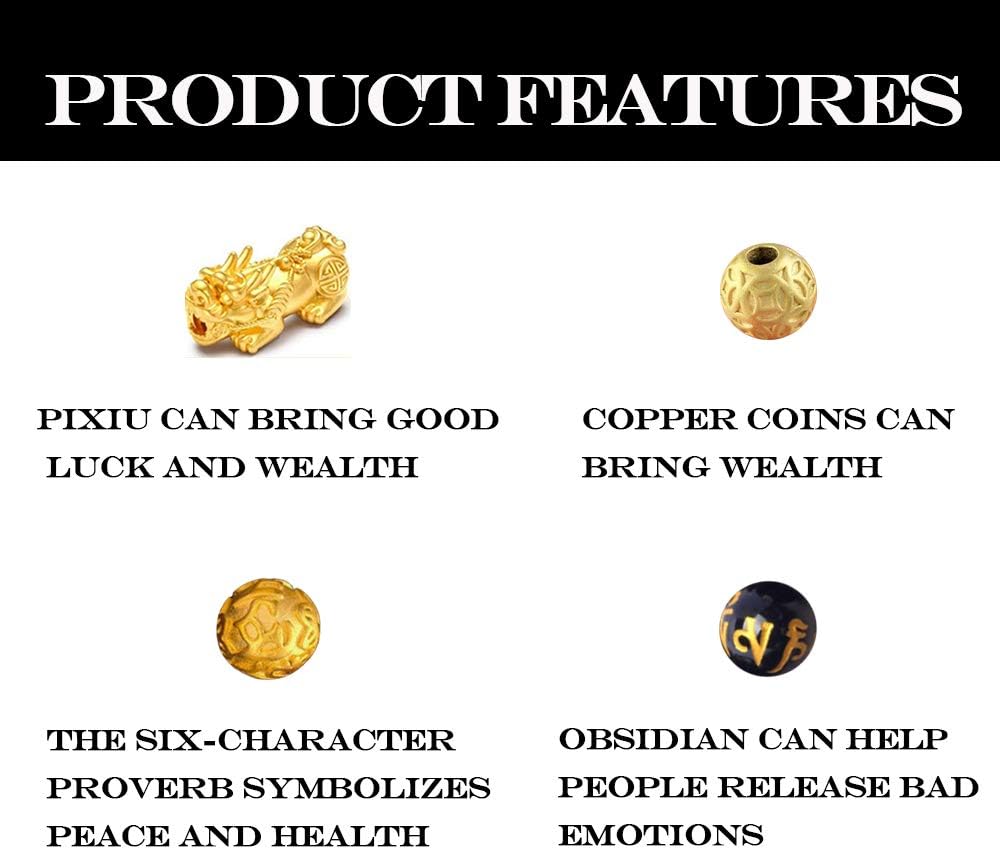 The bracelets are strung by a gold plated Pi Xiu, obsidian, means it can collect strong power, the colors and styles are elegant and beautiful, can wear for your daily life.