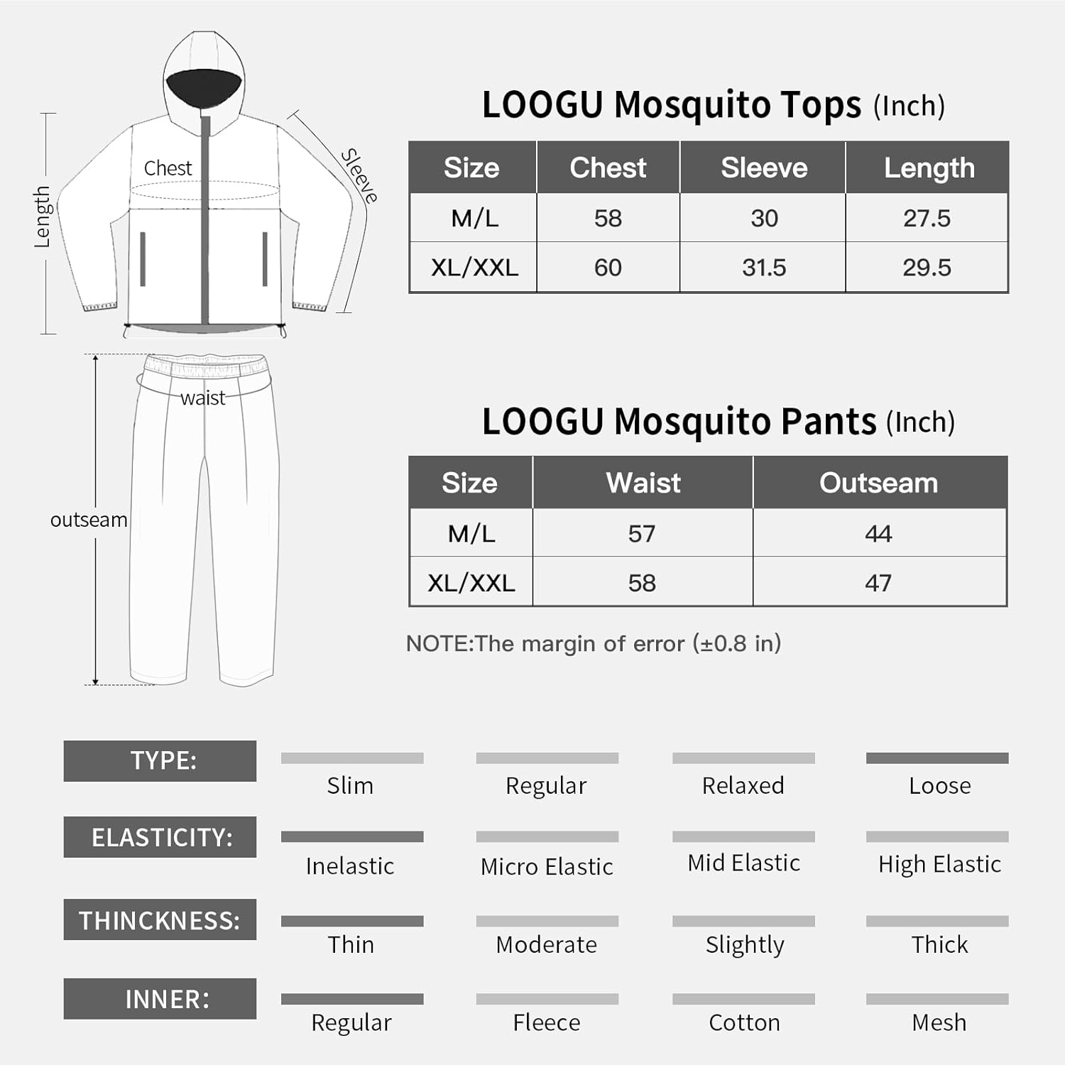 LOOGU Mosquito Suits, Net Bug Pants & Jacket Hood Sets – Ultra-fine Mesh – With Fishing, Hiking, Camping and Gardening