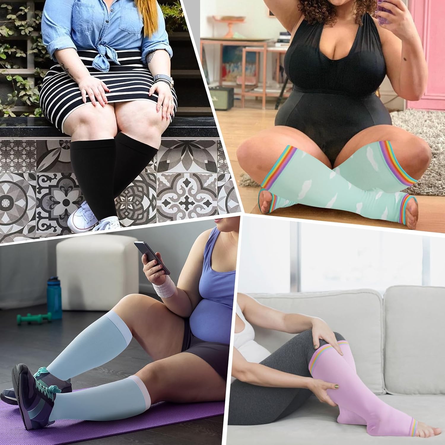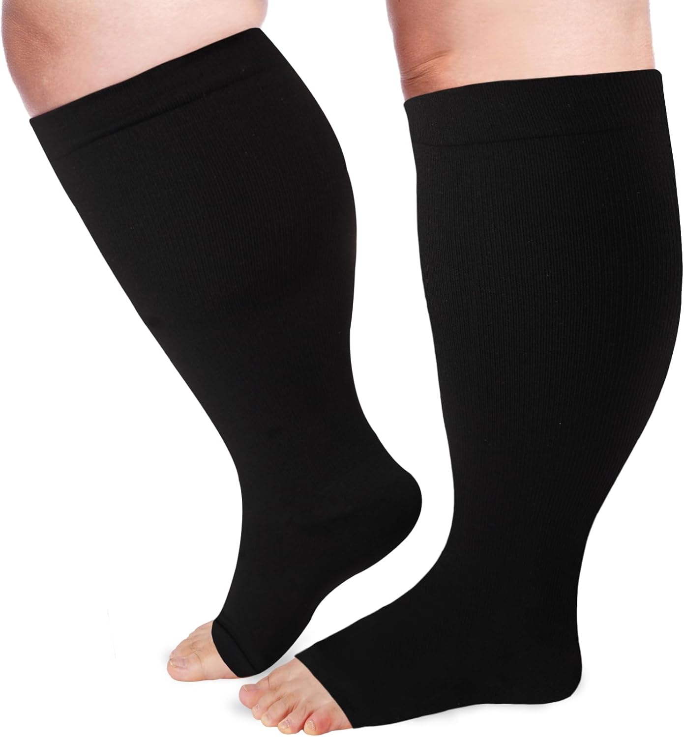 8 reviews for LOUSGUTA Open Toe Plus Size Compression Socks for Women & Men 15-20 mmhg Toeless Wide Calf Compression Support Knee High Socks