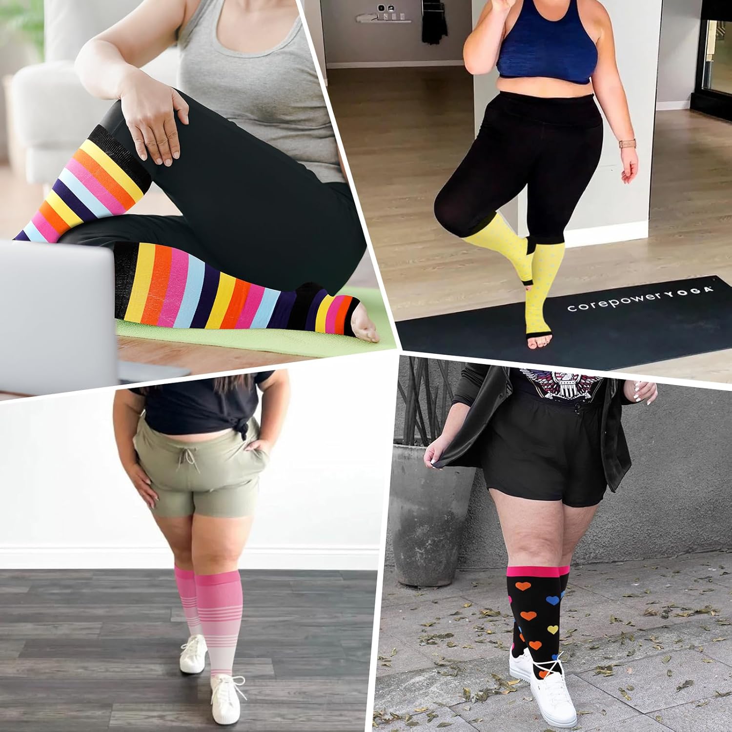 LOUSGUTA Open Toe Plus Size Compression Socks for Women & Men 15-20 mmhg Toeless Wide Calf Compression Support Knee High Socks