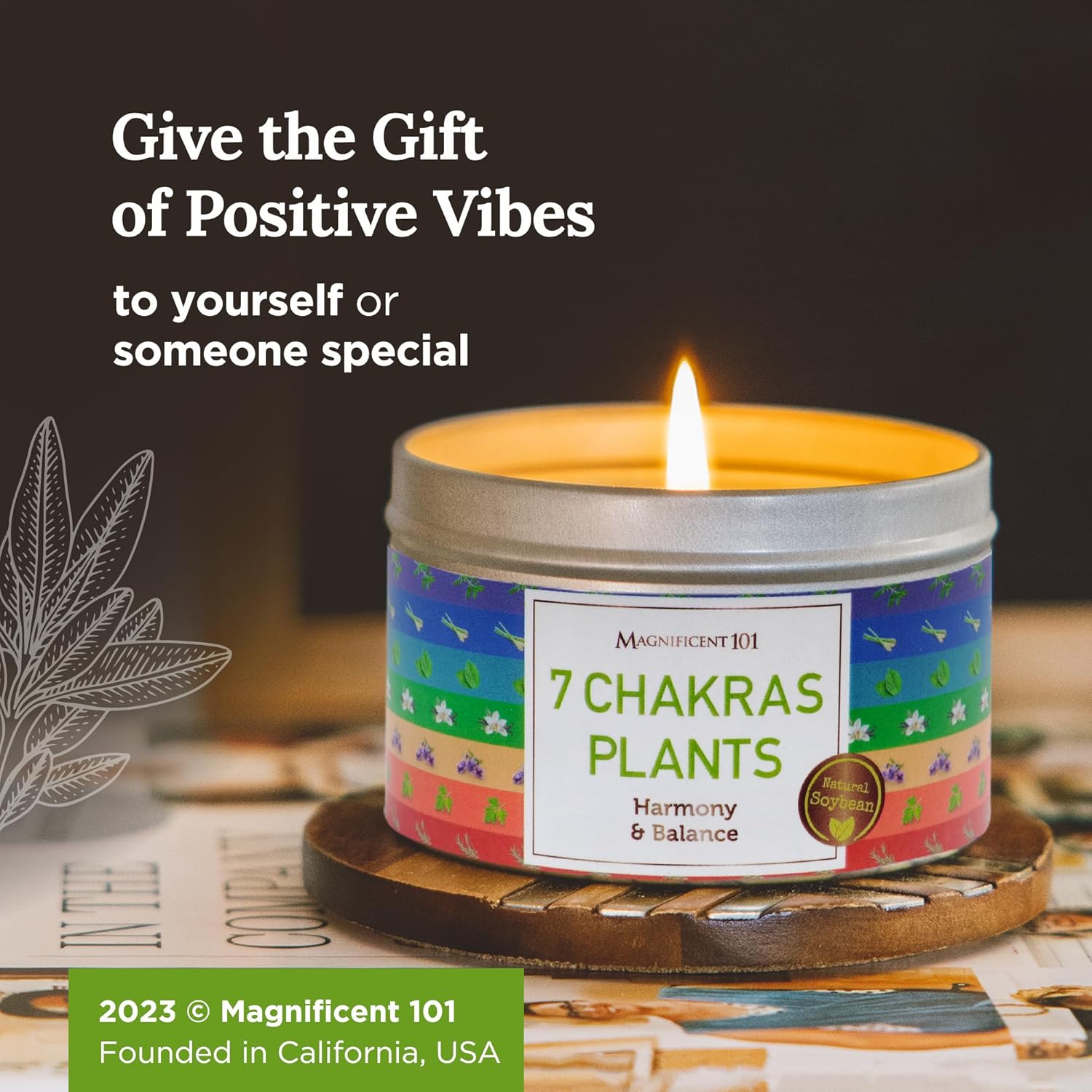 MAGNIFICENT 101 7 Chakras Plants Smudge Candle for Harmony and Balance, House Energy Cleansing, Banishes Negative Energy I Purification and Chakra Healing – Natural Soy Wax Tin Candle