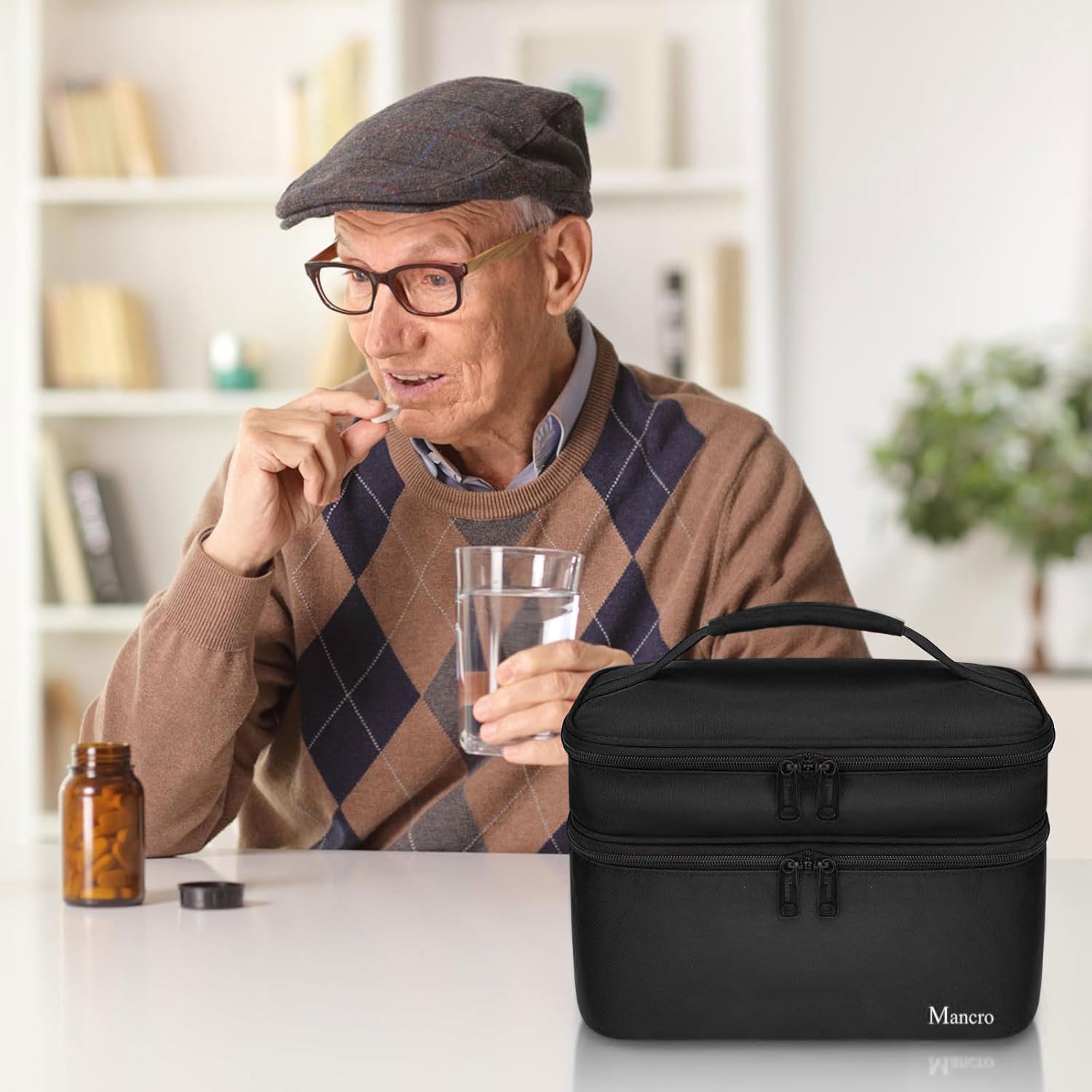 8 reviews for Mancro Dual Layers Medicine Organizer Bag, Pill Bottle Organizer Storage with Lockable Zipper, Medication Travel Bag for Pills, Vitamins, Medical Supplies for Home Storage, Black