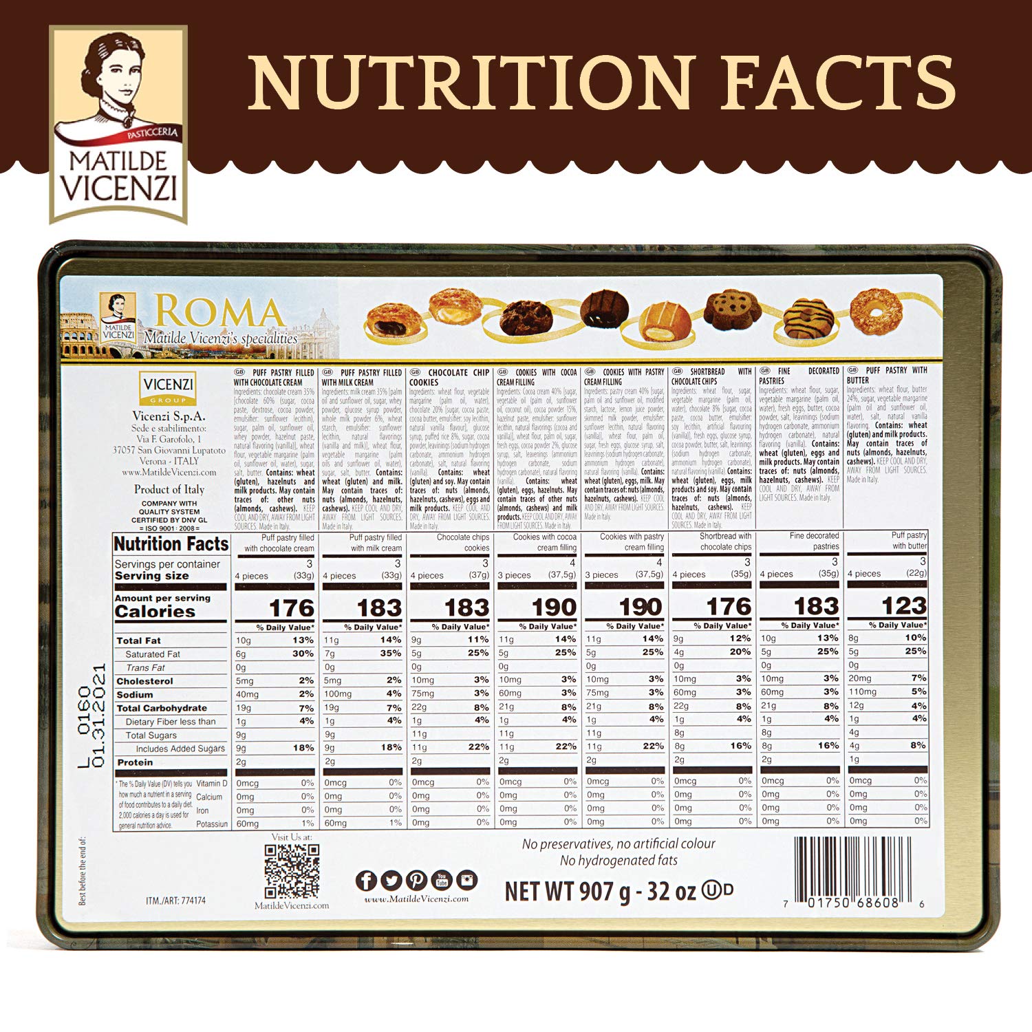 Matilde Vicenzi Roma Cookie Tin – Italian Pastries & Bakery Cookies in Individually Wrapped Trays – Bakery Dessert Gifts – Puff Pastry, Assorted Cookies in Italian Design Gift Tin 32oz (907g)