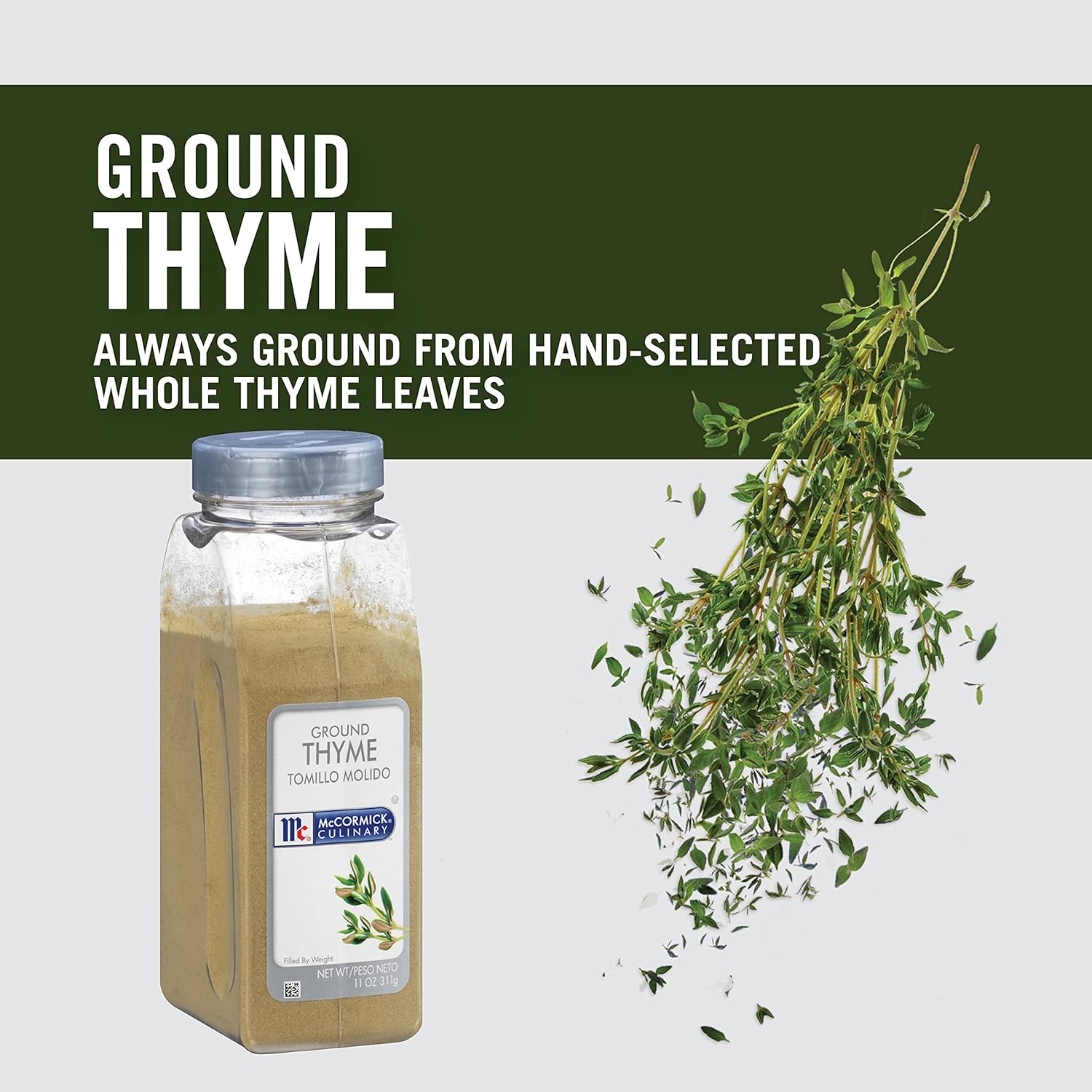 McCormick Culinary Ground Thyme, 11 oz – One 11 Ounce Container of Ground Thyme Seasoning, Best with Chowders and Soups, Meat, Seafood, Mashed Potatoes and More
