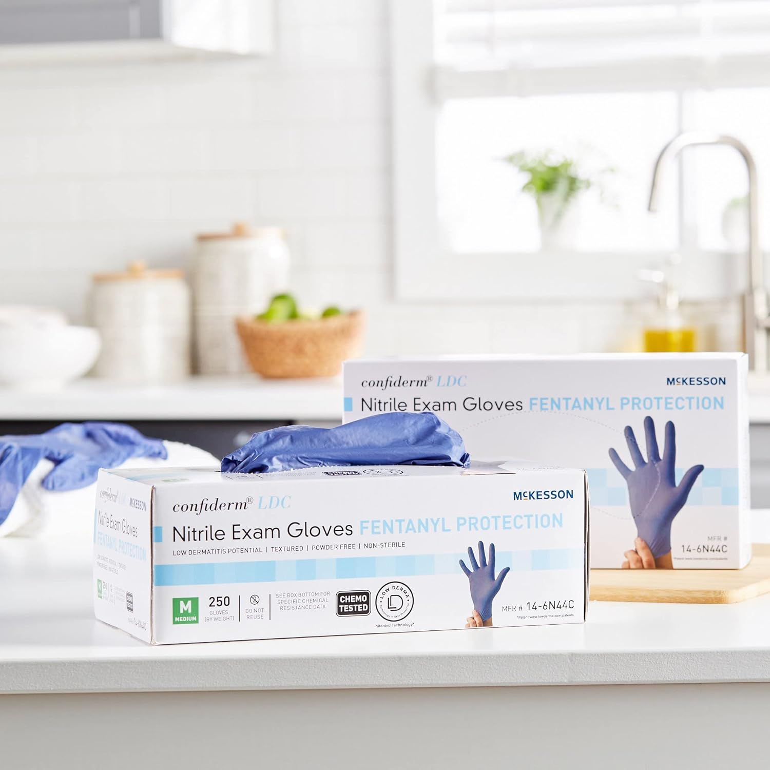 McKesson Protective Gloves, Medium Blue, 9.25 in Length, Latex-Free, Ideal for Healthcare, First Responders, Police, Clinical Lab Workers, ICU Employees, Chemotherapy