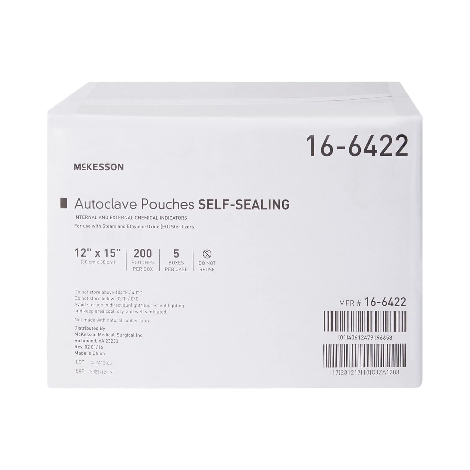 McKesson Sterilization Pouches, Medical-Grade Self-Sealing Autoclave Sterilizer Bags for Equipment, 12 in x 15 in, 200 Count, 1 Pack