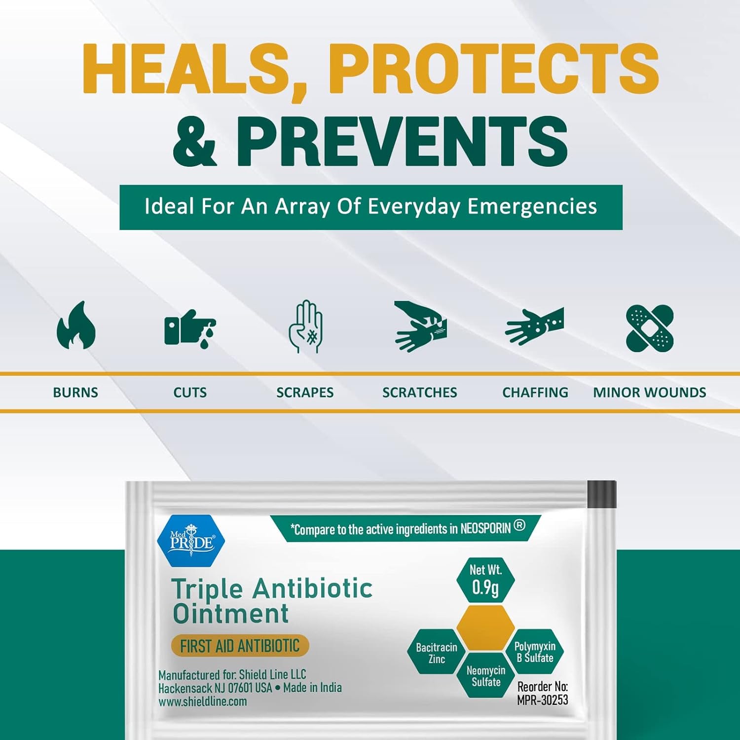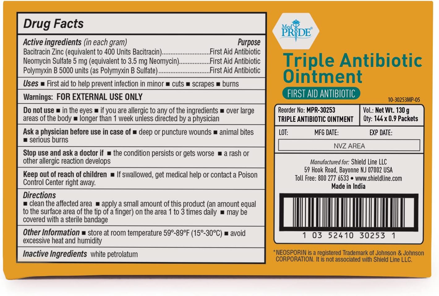 MED PRIDE Triple Antibiotic Ointment [144 Packets x 0.9g Each]- First Aid Antibiotic Cream – Travel-Size Individual Antibiotic Ointment Packets for Burns, Scrapes, Cuts, Wound Care