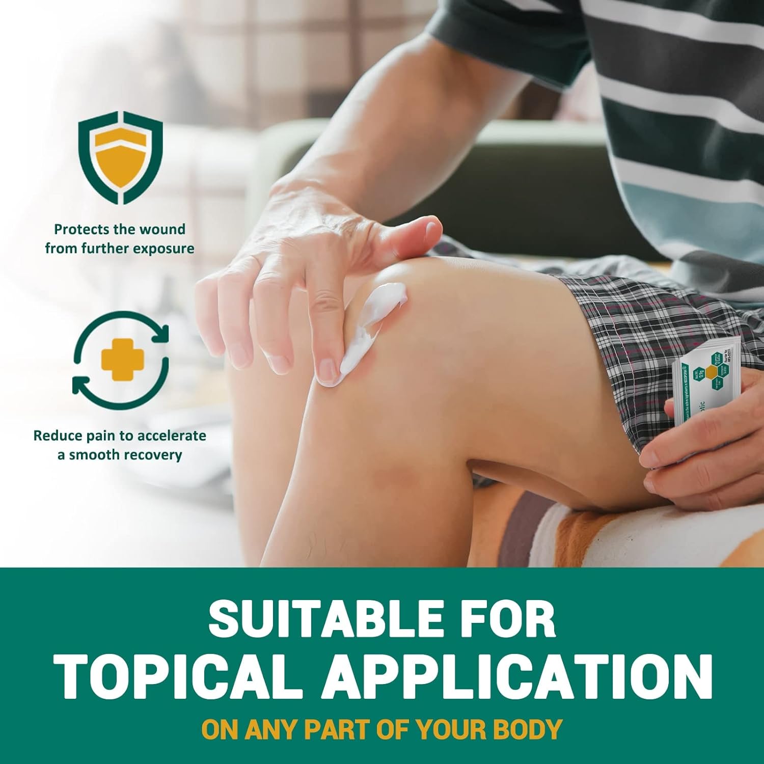 Effective healing & cleaning action for an array of conditions: This multi-purpose topical antibiotic cream is a safe and effective choice for a variety of wounds and injuries, including: minor cuts, scrapes, burns, chafed skin and large spots. Once applied, it will keep the affected area clean and shielded to accommodate a smoother healing process.
