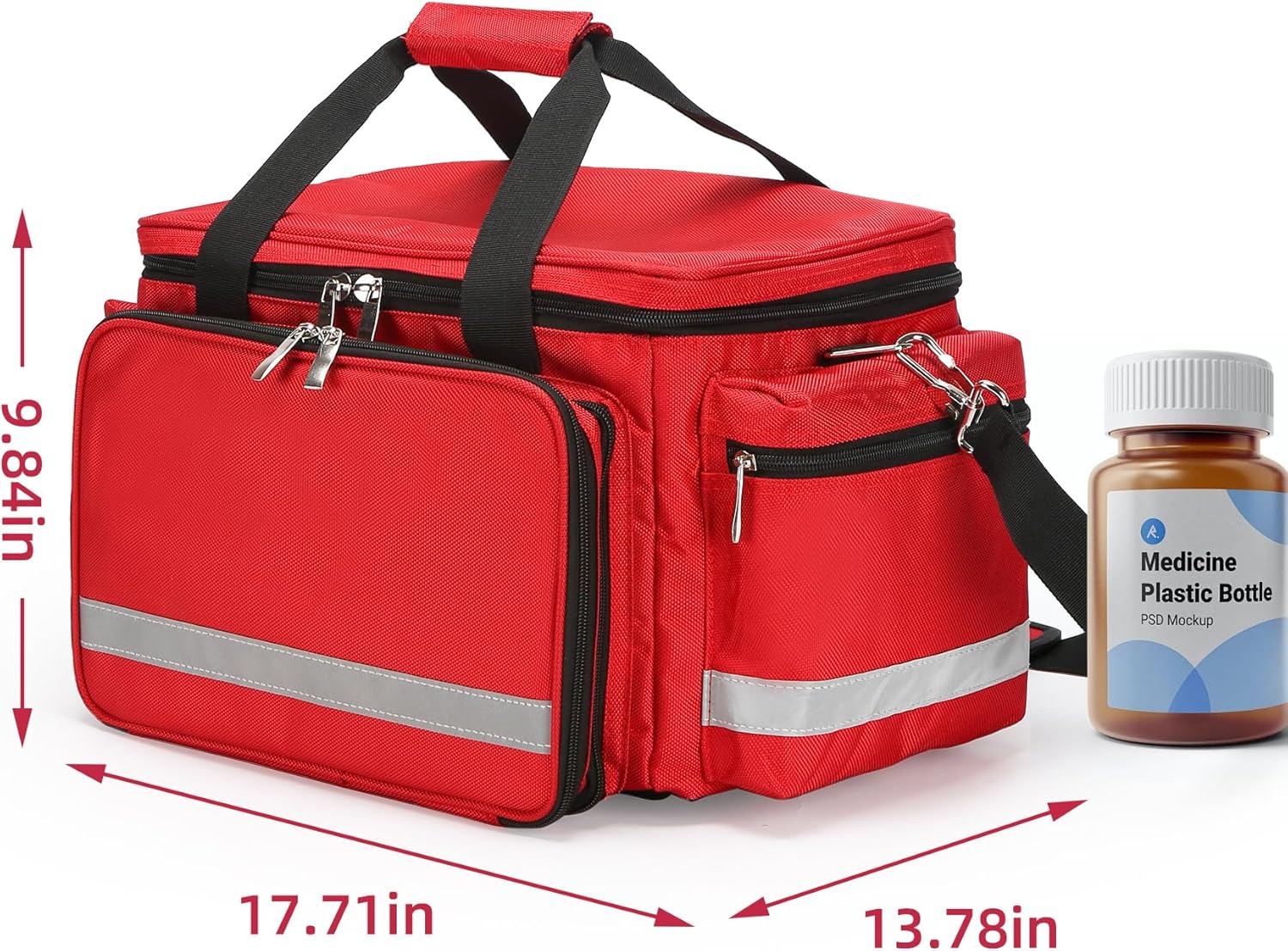 Medical Organizer Bag : Size:17.71 x 13.78 x 9.84 inch, enough space for you to store daily first aid supplies. Made of heavy-duty and tear-resistant nylon with padded PE foam liner, well stitches, strong zippers, no-slip feet, reflective strips. Offer well protection for your first aid supplies.