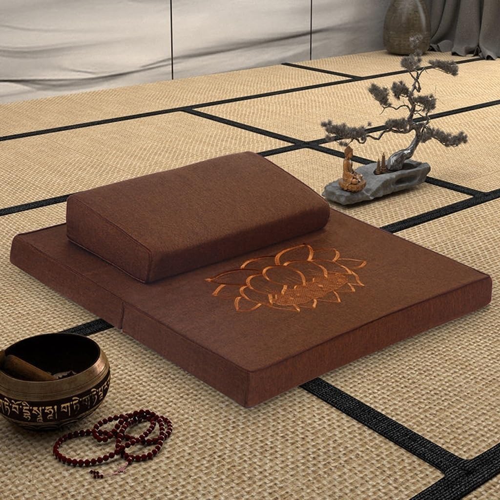 Meditation Cushion Folding Coconut Silk Meditation Meditation Cushion Thickened Yoga Cushion Pillow Cushion Kneeling Buddha Futon Meditation Accessories (Color : Brown, Size : 60 * 60cm)