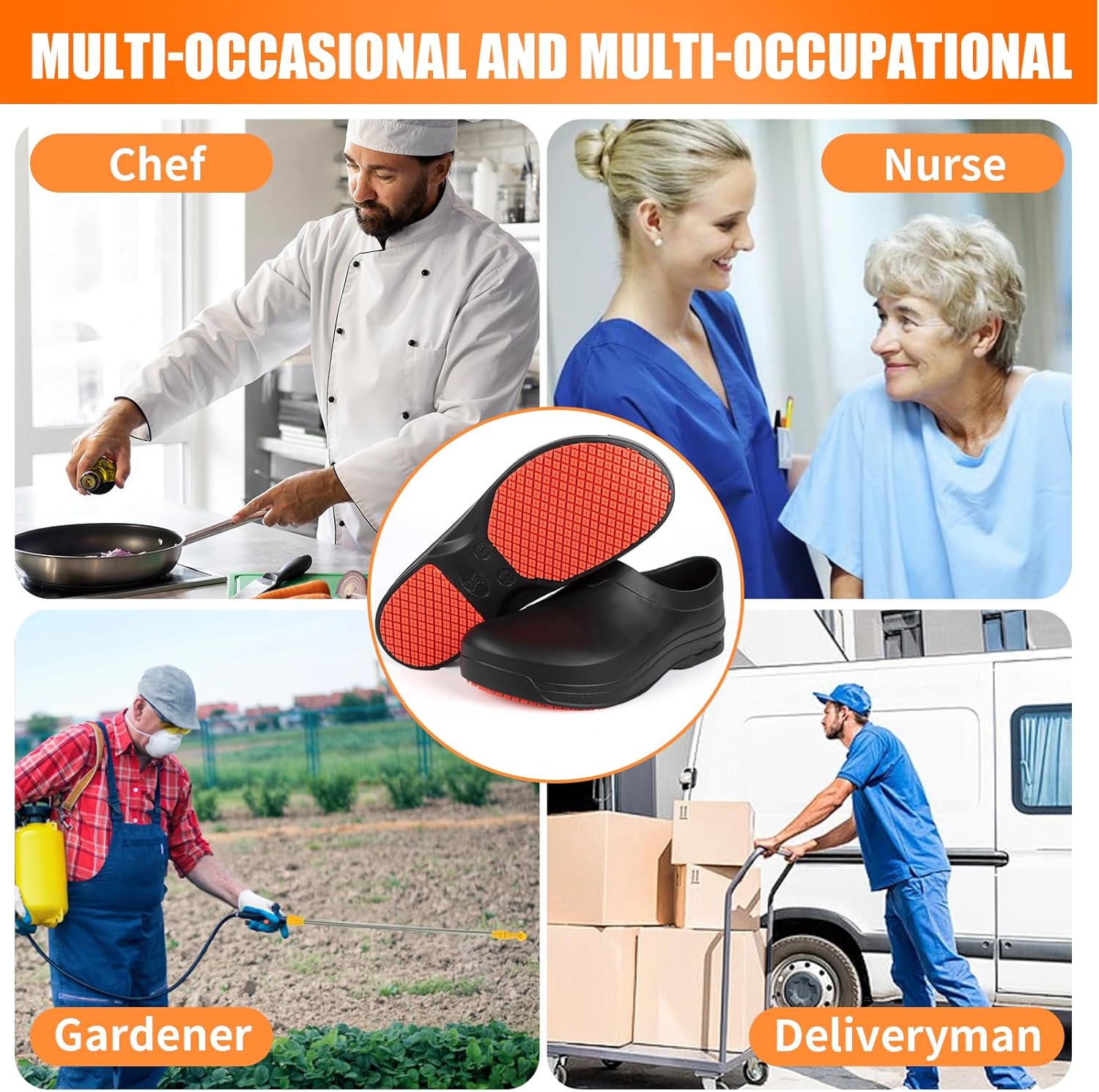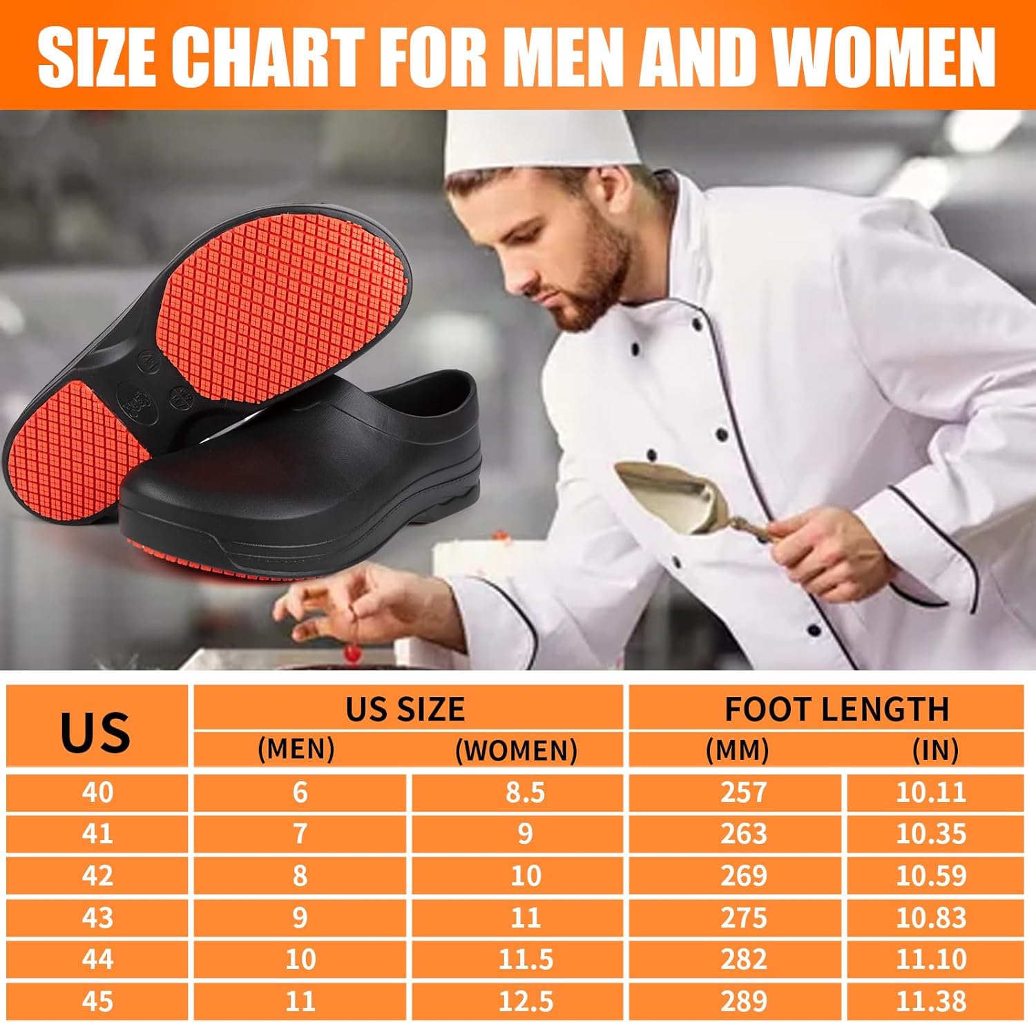 Mens Clogs Non Slip Chef Shoes for Women Men Food Service Comfortable Water Resistant Unisex Nursing Nurse Shoes for Work Kitchen Restaurant