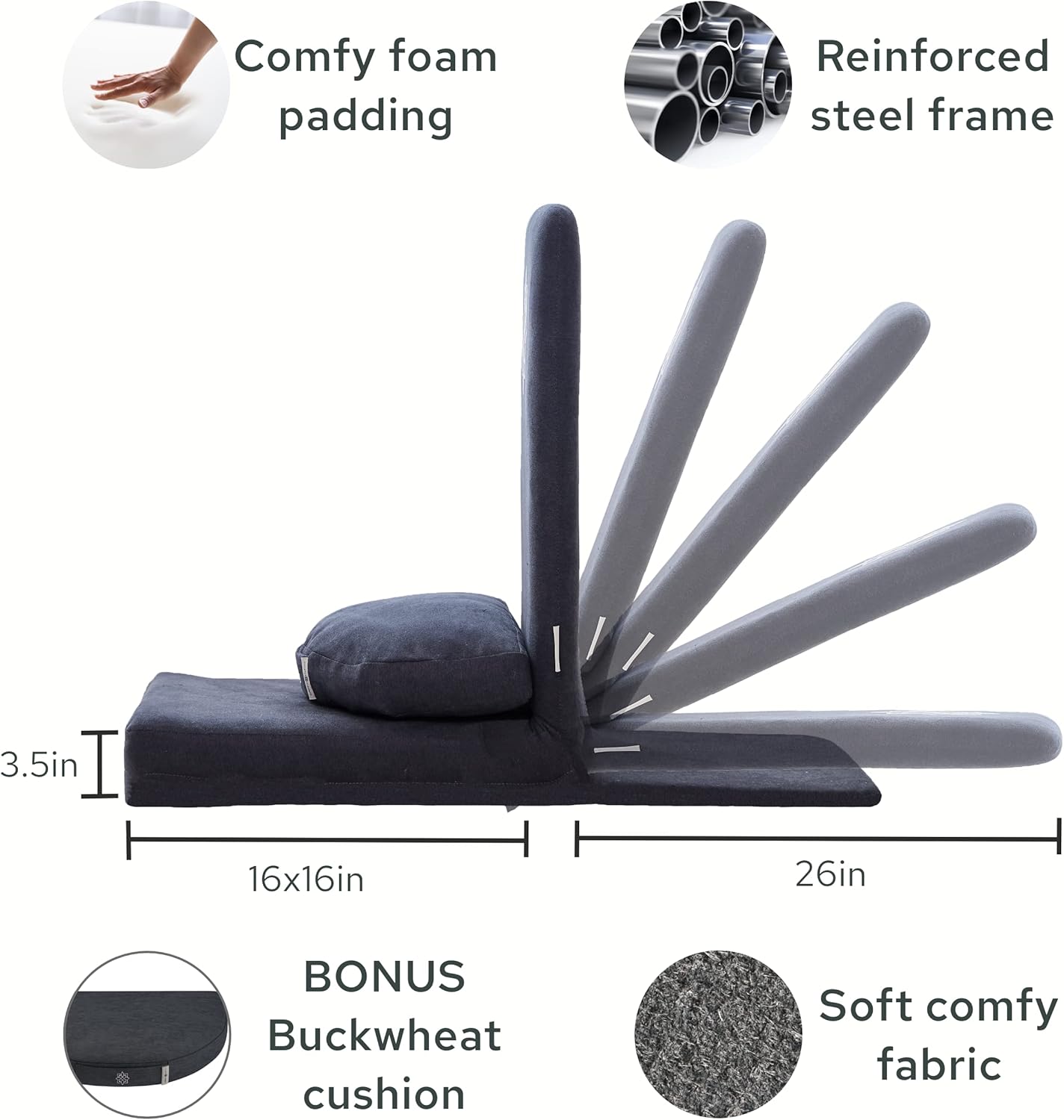 LONG-LASTING MATERIALS – The high-quality metal frame increases support, while floor seating on the soft Holland Velvet cover. These durable floor chairs for adults are made to be used over and over again and will support your meditation practice for years! It comes with a bonus, detachable buckwheat-filled meditation cushion.