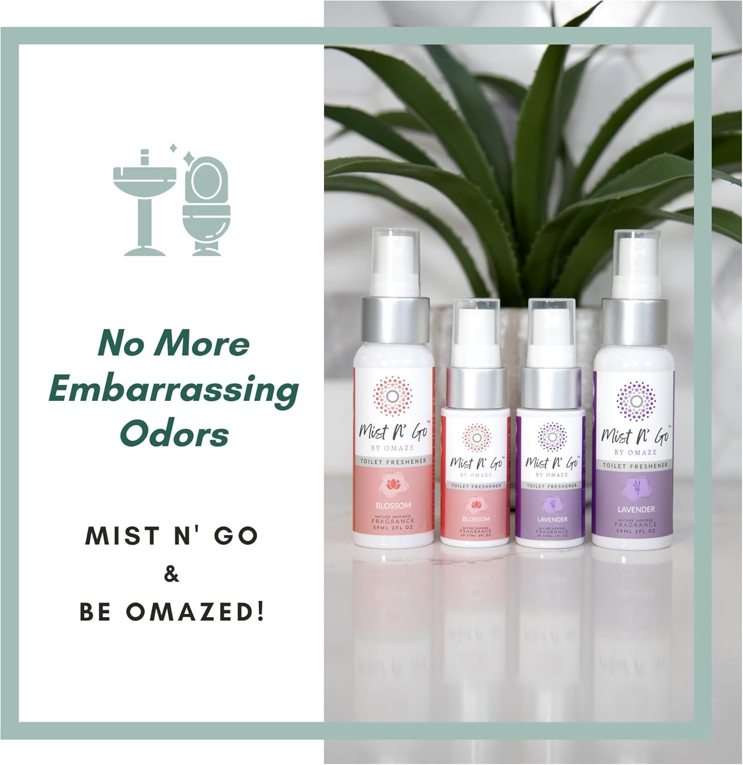 Mist N’ Go by Omaze Travel Bathroom Spray for Toilet Spray Odor Eliminator – Travel Toilet Spray for Bathroom Air Freshener Spray for Bathroom Deodorizer – Blossom Travel Size (1oz x2)