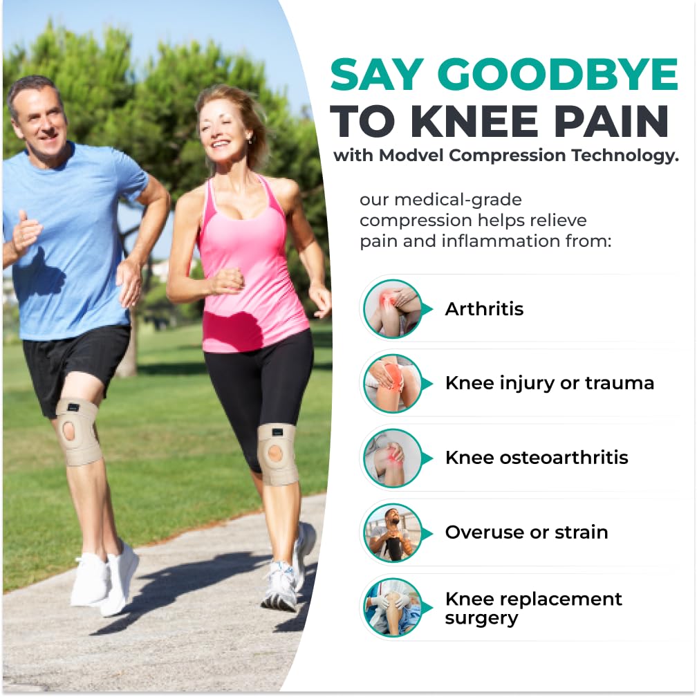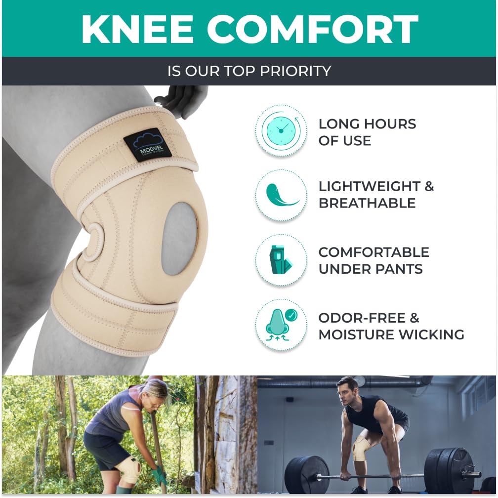 MODVEL ELITE Knee Brace for Women & Men with Side Stabilizers, Patella Gel Pads Brace for Meniscus Tear for Maximum Knee Pain Support – ACL Knee Braces for Running, Workout, Arthritis & Joint Recovery