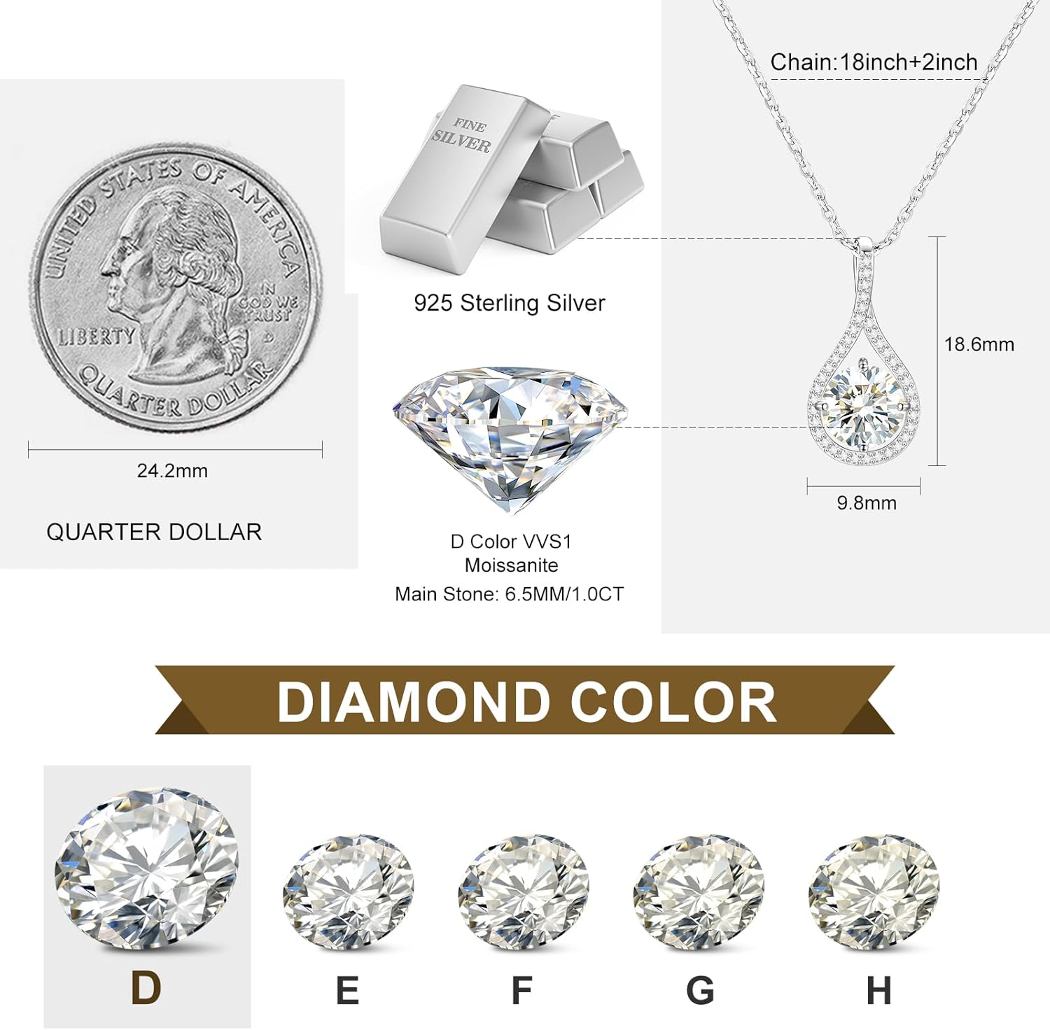 8 reviews for Moissanite Diamond Necklace Gift for Women, 925 Sterling Silver 18K White/Yellow Gold Plated 1CT-4CT Lab Created Diamond Pendant for Her, Anniversary Day Valentines Gift, Wedding – to My Wife, Mom, 18+2 inches Necklace with GRA Certificate of Authenticity