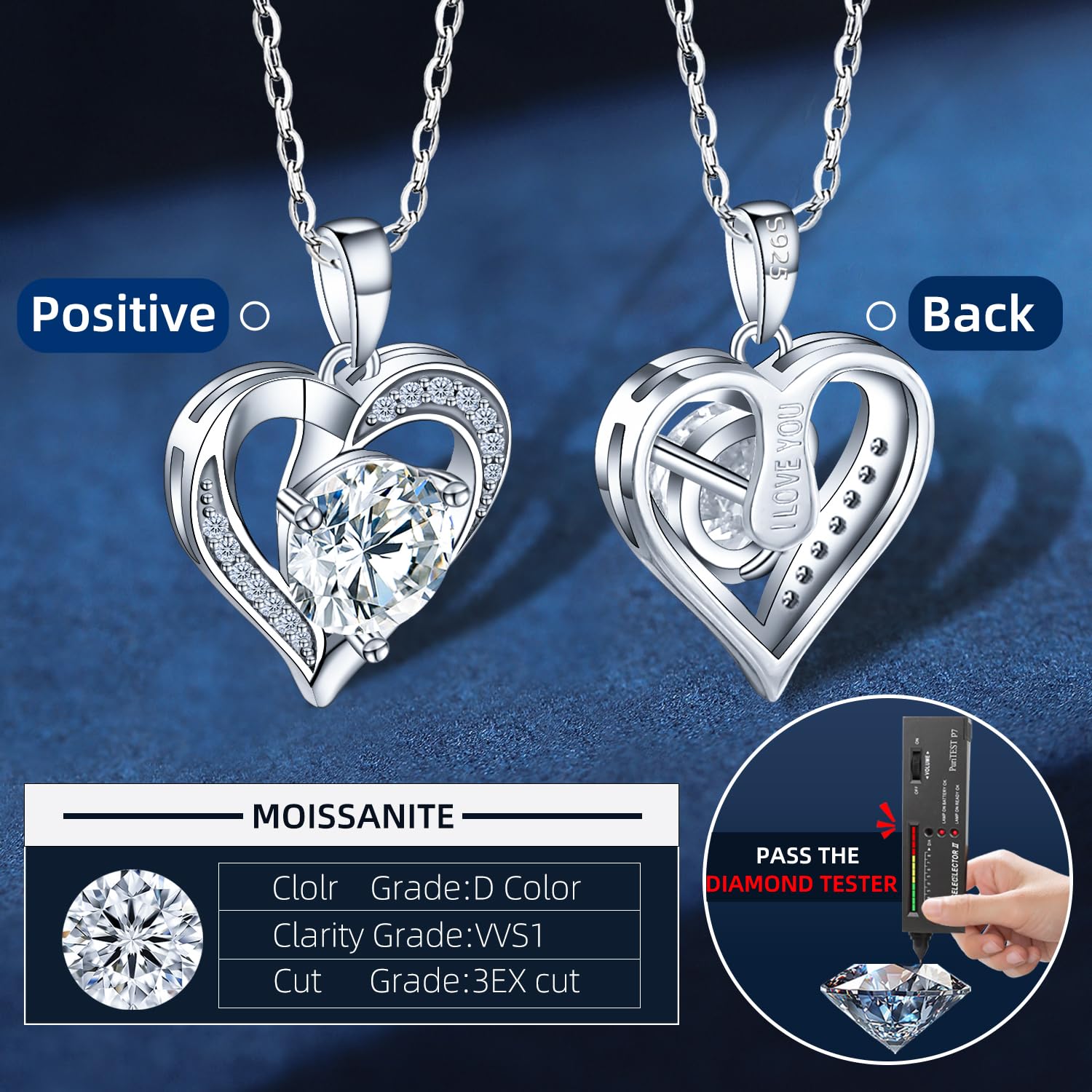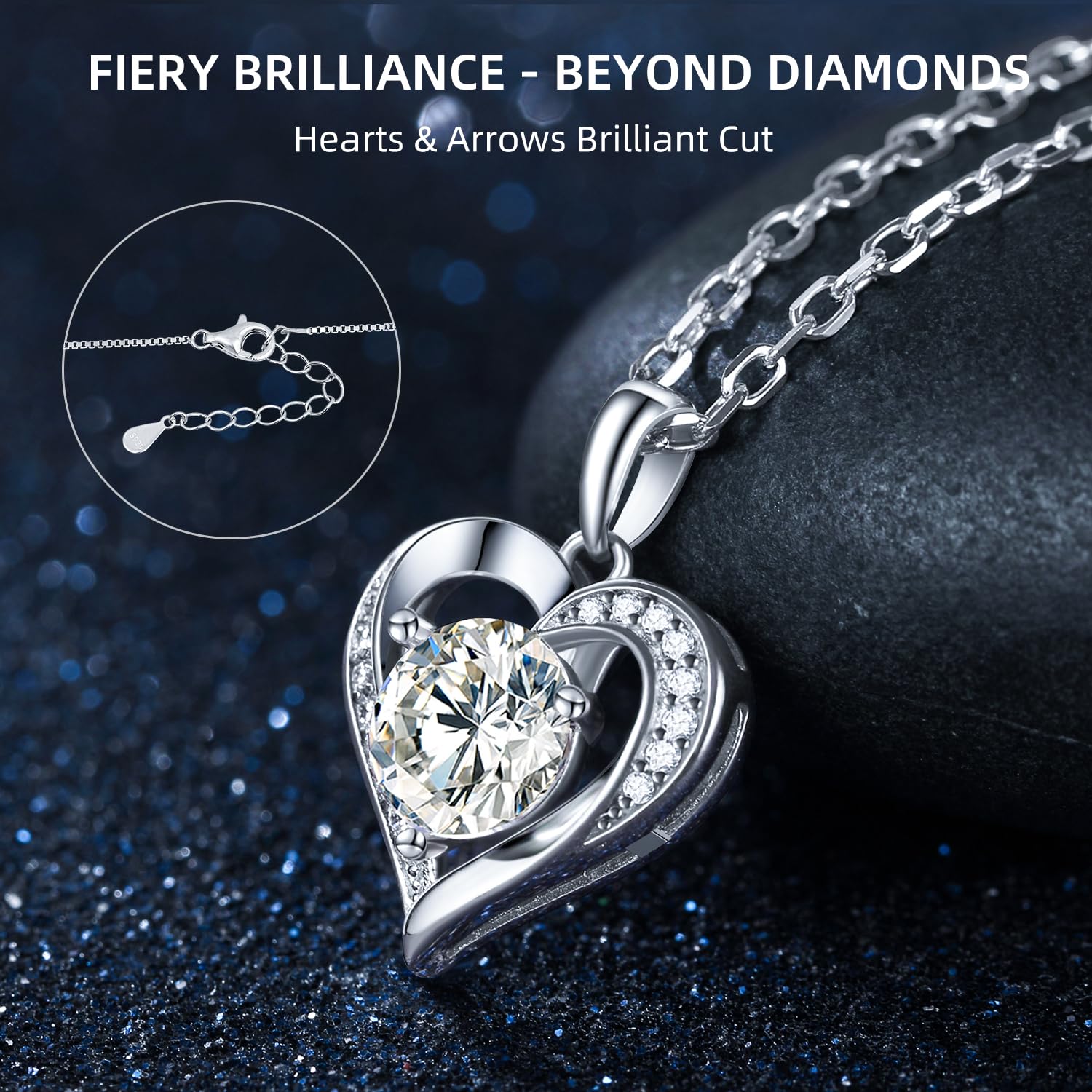 Moissanite Necklace for Women 1.0ct D Color,18K White Gold Plated Sterling Silver Heart Necklace, Anniversary Gifts for Women, Making It A Perfect Gift for Your Wife, Girlfriend, Mom