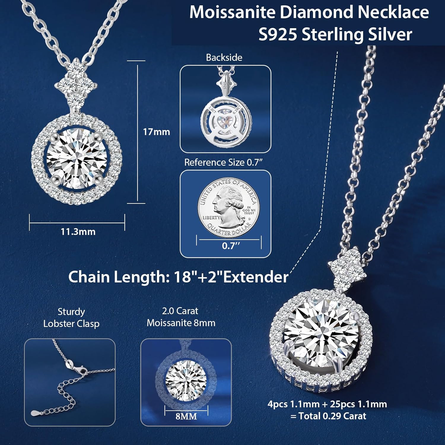 8 reviews for Moissanite Necklace for Women, 1-2CT Halo Round Moissanite Diamond Necklaces for Women, S925 Gold Silver Diamond Necklace, Moissanite Necklace Lab Grown Diamond Jewelry Gifts for Women Mom Wife Her